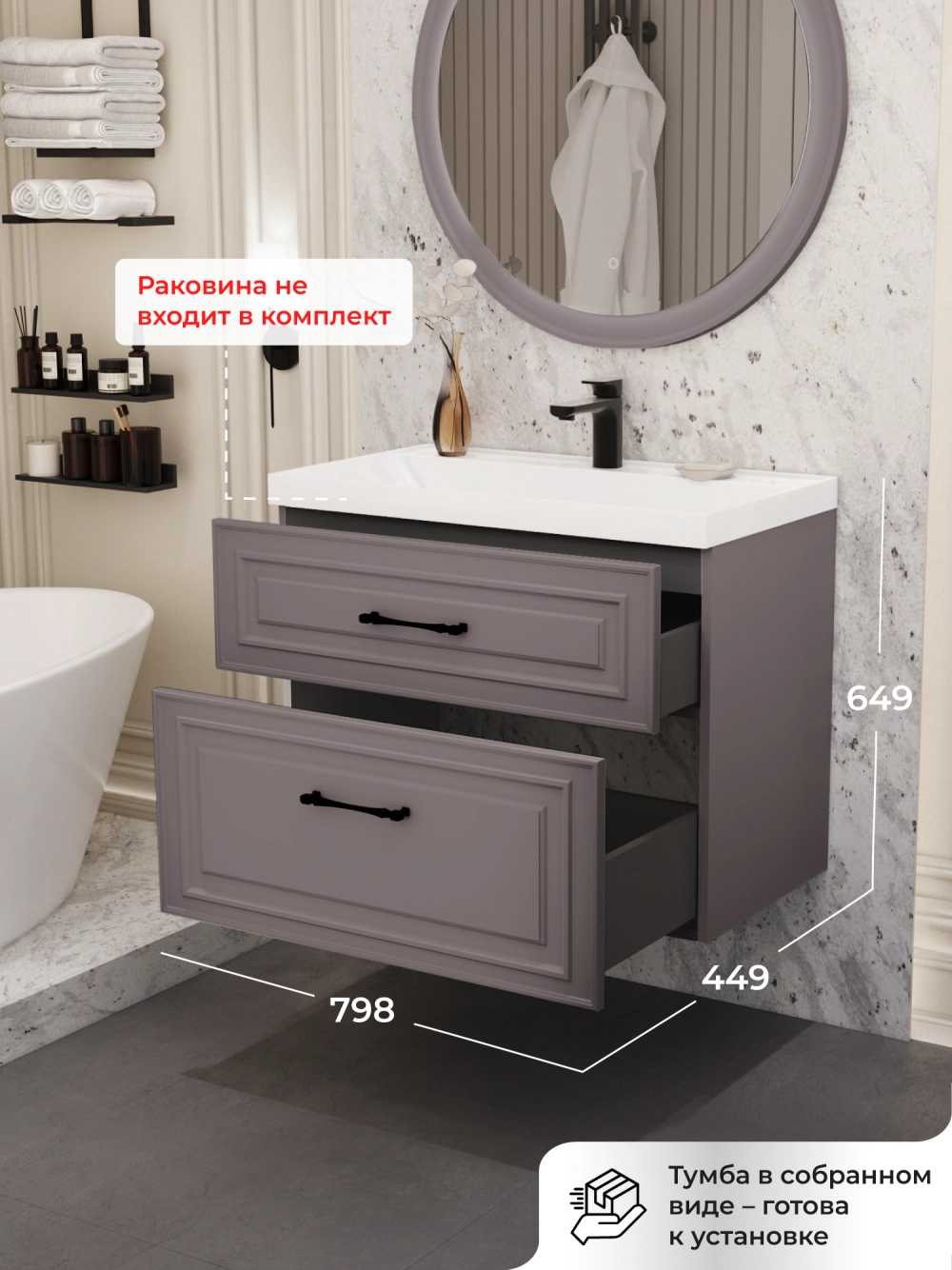 Подвесная тумба под раковину из коллекции Verona станет настоящим украшением ванной комнаты в современном скандинавском стиле. Навесной способ установки тумбы в ванную дает возможность не только визуально увеличить пространство, но и обеспечивает быстрый и удобный доступ для уборки. Размеры подвесной тумбы под раковину 792х446х600 - идеальный выбор для ванной комнаты или туалета. Тумба для ванны изготовлена из прочного МДФ, поэтому выдерживает высокие эксплуатационные нагрузки и обеспечивает дополнительную защиту тумбы под раковину от влаги и перепадов температуры. Качественная фурнитура с доводчиками обеспечивает легкое открывание и плавное закрывание ящика. Вырез под сифон универсальный, для любого типа. Благодаря своей конструкции тумба в ванную обеспечивает удобный доступ к раковине и позволяет скрыть коммуникации. Тумба под раковину в ванную оснащена удобным ящиком для хранения, что позволяет разместить всё необходимое под рукой. Ручки интегрированы в фасад дверки шкафчика, что исключает возможность случайного удара о фурнитуру. Для точного выбора подвесной тумбы под раковину в ванную комнату рекомендуем обратиться к схеме замеров, которая находится на фото в карточке товара, размеры изделия могут отличаться +/-1 см в связи со спецификой производства. Тумба для ванной доставляется в предварительно собранном виде, надежно упакована.