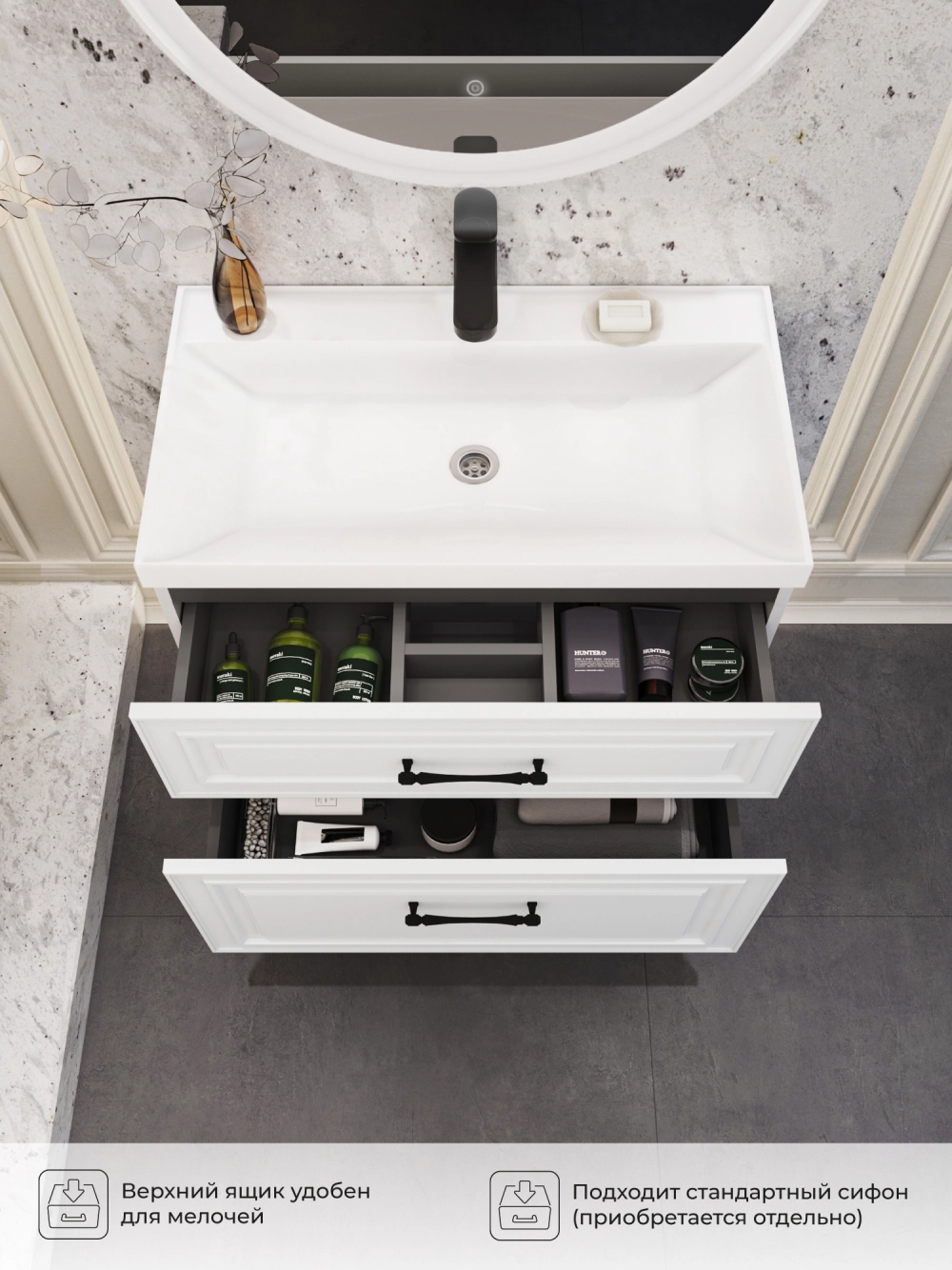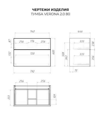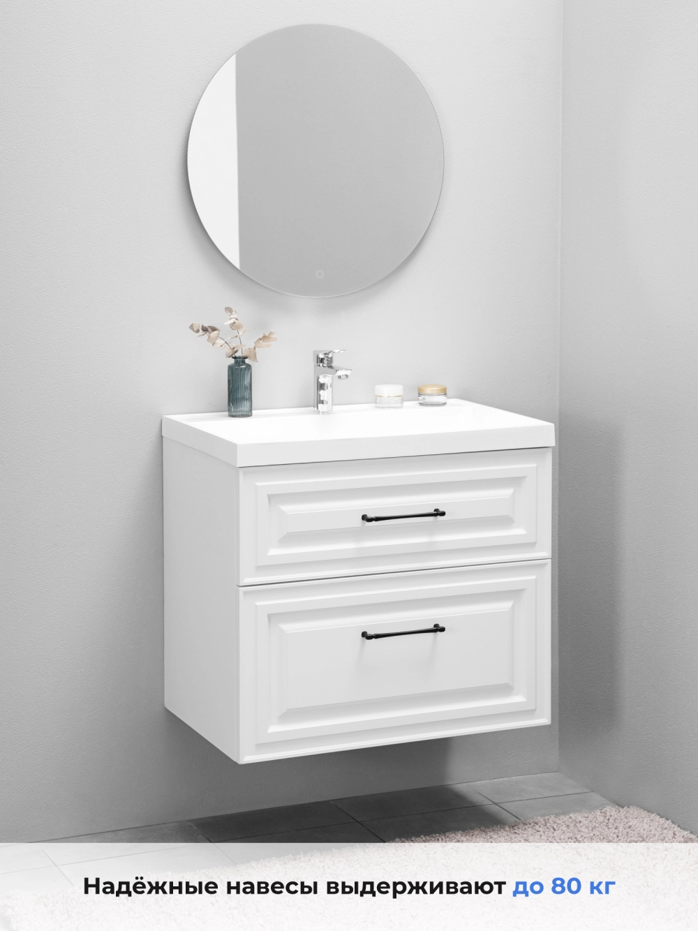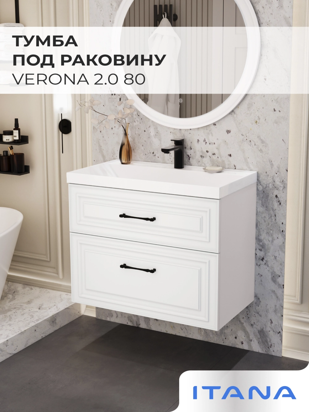 Тумба под раковину Итана Verona 2.0 80 с выдвижными ящиками Эмаль Белый Матовый
