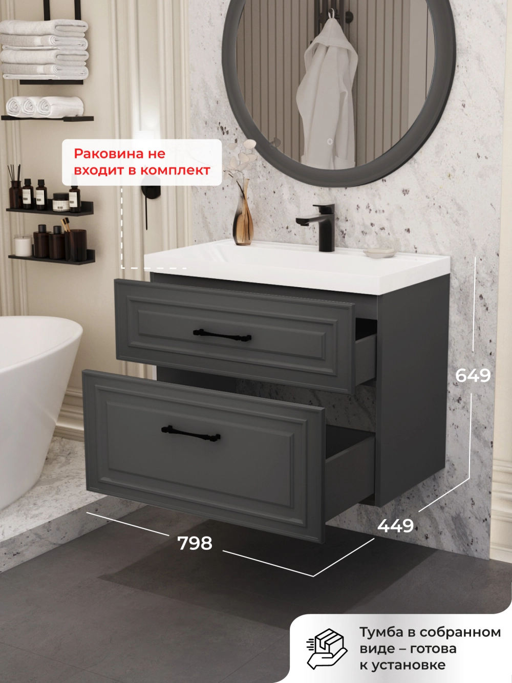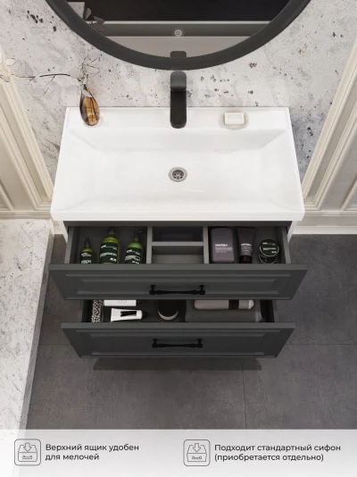 Тумба под раковину Итана Verona 2.0 80 с выдвижными ящиками Графит