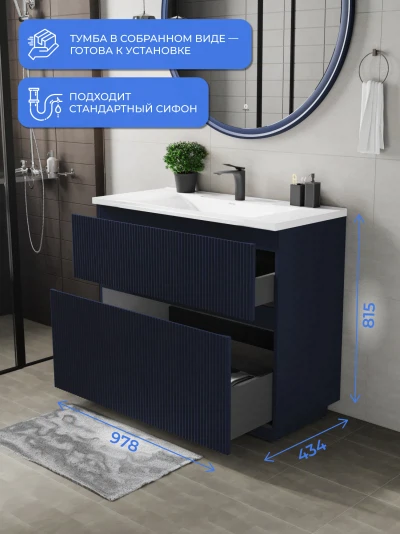 Тумба под раковину напольная Итана Kate 100 с выдвижными ящиками Океания