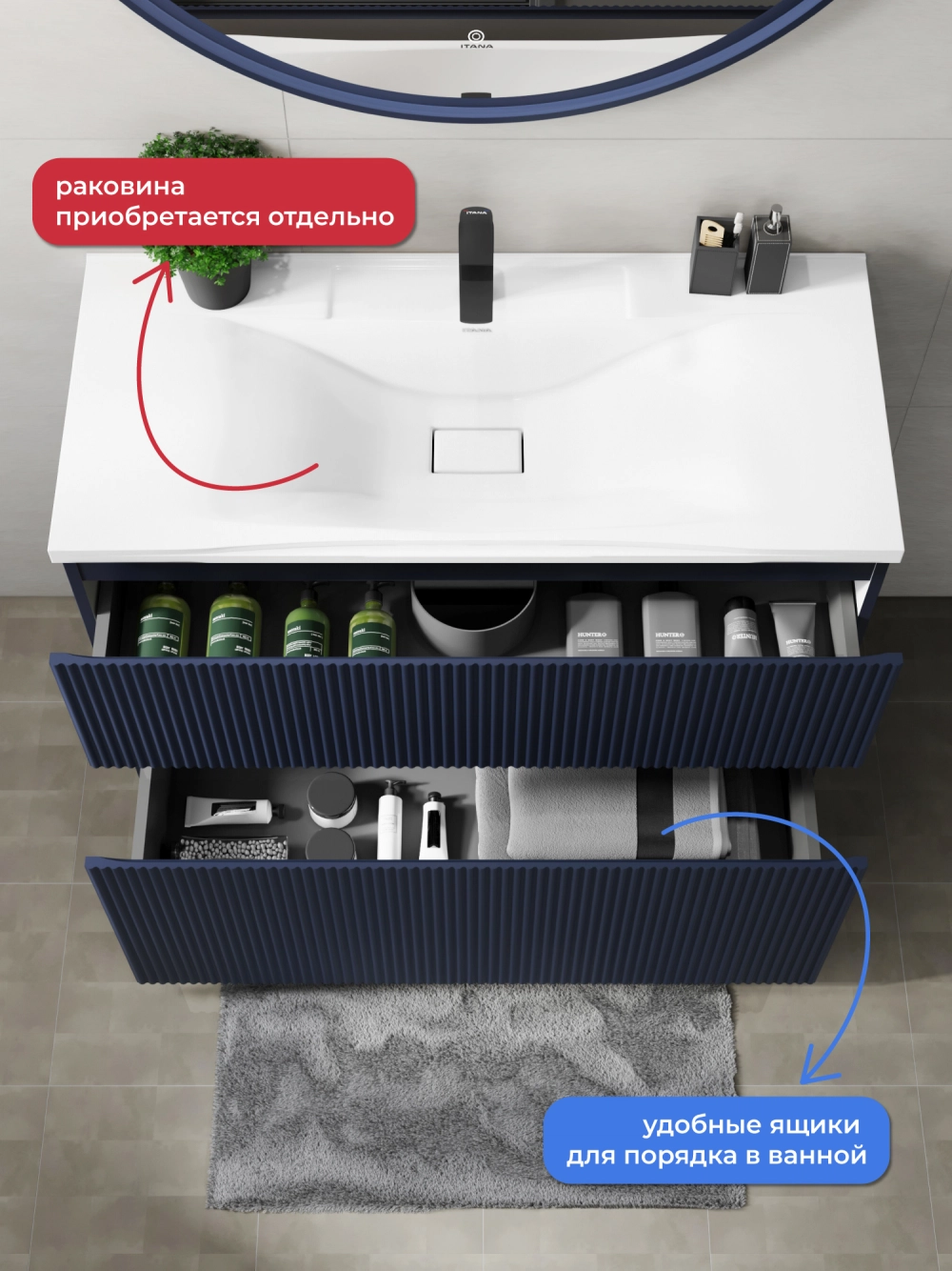 Напольная тумба под раковину Итана Kate станет идеальным дополнением для вашей ванной комнаты, сочетая в себе стильный дизайн и функциональность. Коллекция Kate - воплотила в себе тренд на фактурные фасады. Идеальный "рубчик" - простое и стильное дизайнерское решение для декорирования фасадов - эта мебель бесспорно станет украшением современной ванной комнаты. Тумба изготовлена из высококачественных материалов, гарантируя долговечность и надежность эксплуатации. Удобные фрезерованные ручки, качественная фурнитура с доводчиками, вместительность - мы продумали все, чтобы тумба была не просто красивой, но еще и функциональной, приятной в использовании. Ее конструкция позволяет легко поддерживать порядок в ванной, ведь все мелочи будут аккуратно убраны. Стильный декор тумбы добавляет изюминку в общий дизайн, вписываясь в современные и классические интерьеры. Удобные выдвижные ящики обеспечивают простоту доступа к содержимому тумбы.