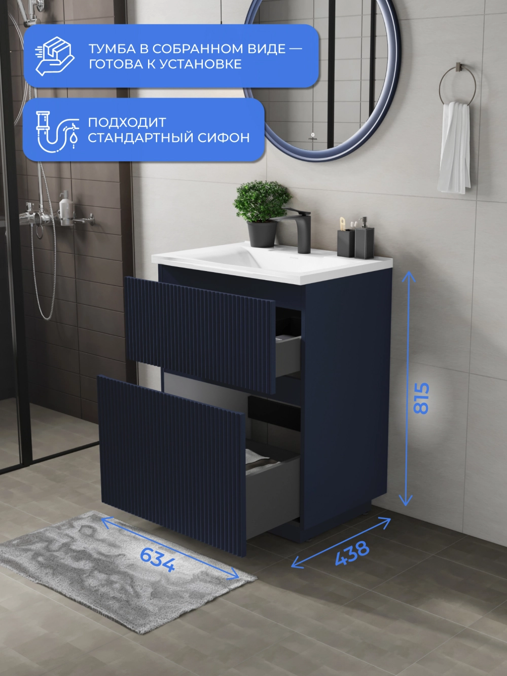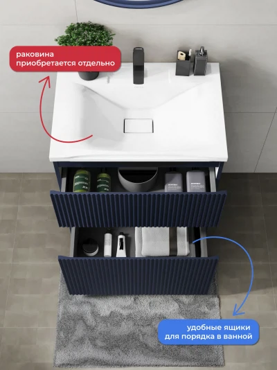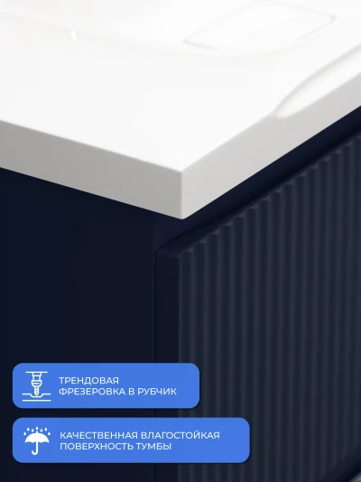 Напольная тумба под раковину Итана Kate станет идеальным дополнением для вашей ванной комнаты, сочетая в себе стильный дизайн и функциональность. Коллекция Kate - воплотила в себе тренд на фактурные фасады. Идеальный "рубчик" - простое и стильное дизайнерское решение для декорирования фасадов - эта мебель бесспорно станет украшением современной ванной комнаты. Тумба изготовлена из высококачественных материалов, гарантируя долговечность и надежность эксплуатации. Удобные фрезерованные ручки, качественная фурнитура с доводчиками, вместительность - мы продумали все, чтобы тумба была не просто красивой, но еще и функциональной, приятной в использовании. Ее конструкция позволяет легко поддерживать порядок в ванной, ведь все мелочи будут аккуратно убраны. Стильный декор тумбы добавляет изюминку в общий дизайн, вписываясь в современные и классические интерьеры. Удобные выдвижные ящики обеспечивают простоту доступа к содержимому тумбы.