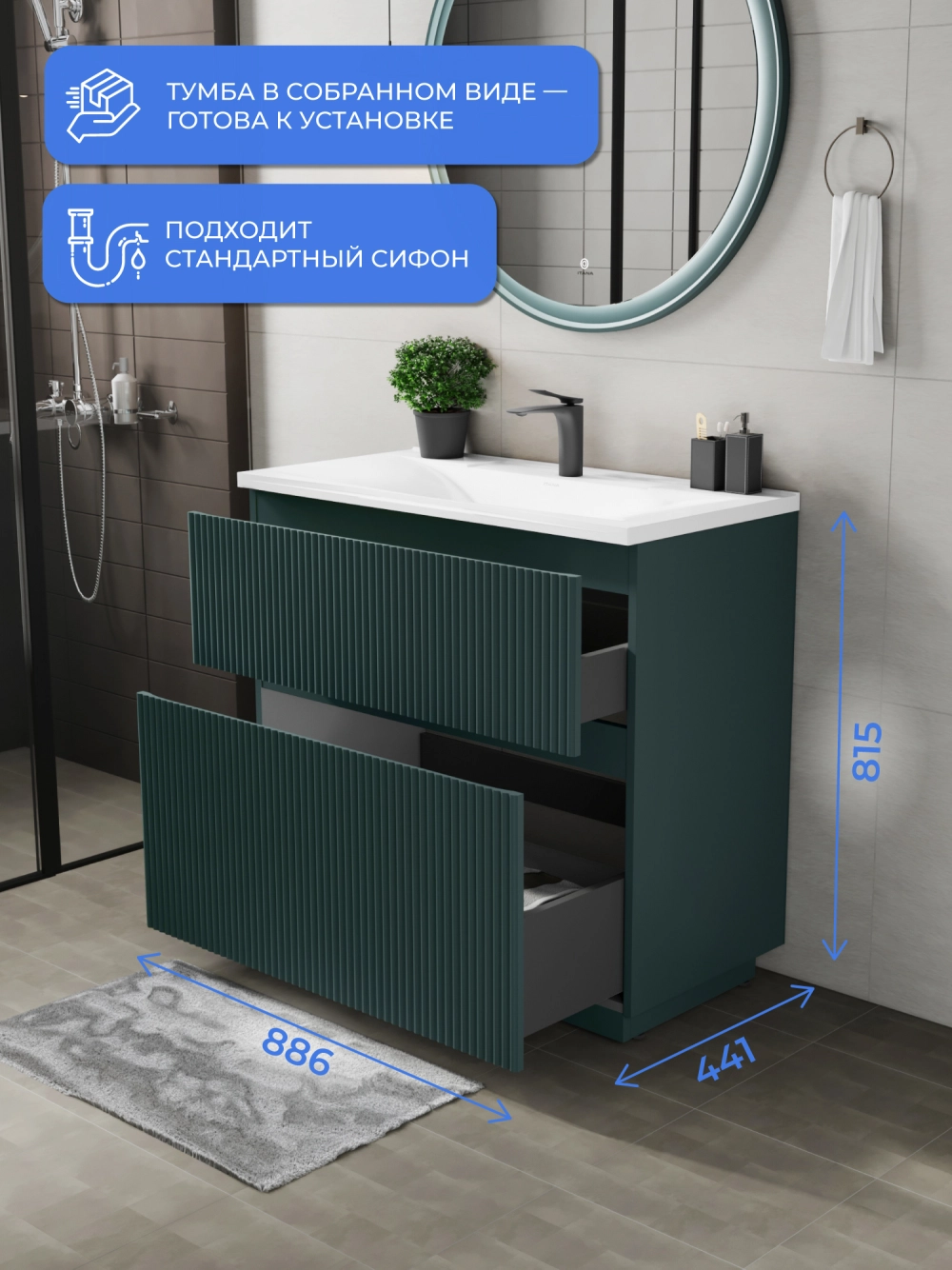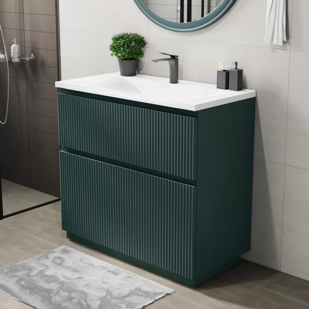 КаталогТумбы под раковинуТумба под раковину напольная Итана Kate 90 с выдвижными ящиками Веллюто Авокадо