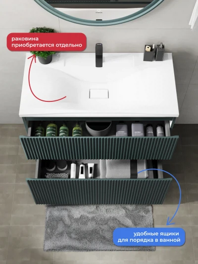 Тумба под раковину напольная Итана Kate 90 с выдвижными ящиками Веллюто Авокадо