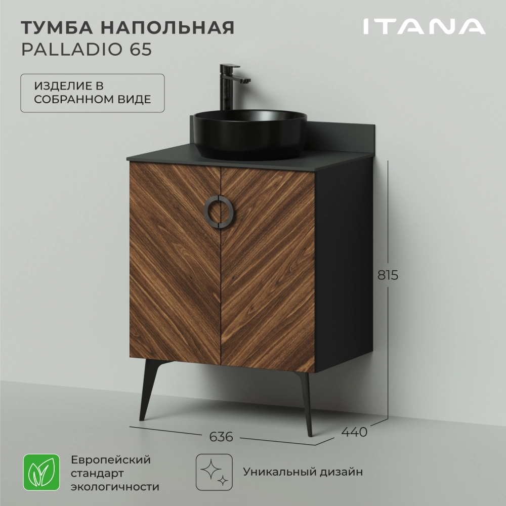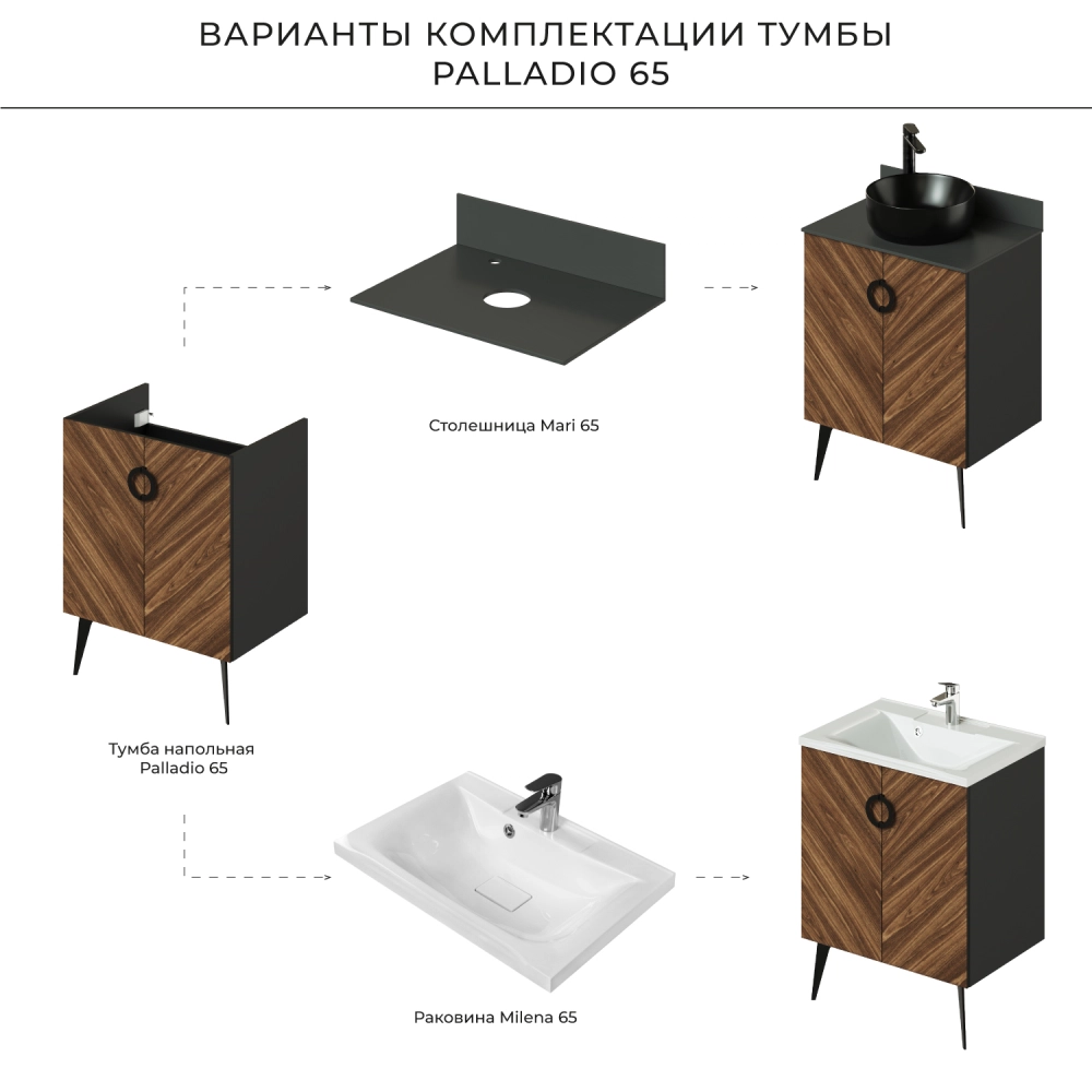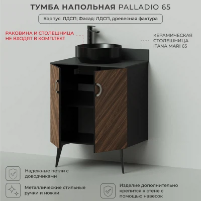 Тумба под раковину напольная Итана Palladio 65 с распашными дверцами Дуб Бурбон