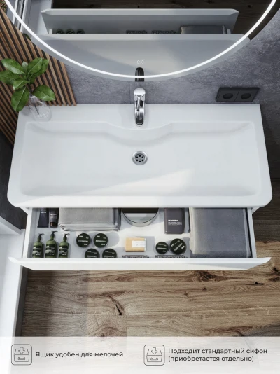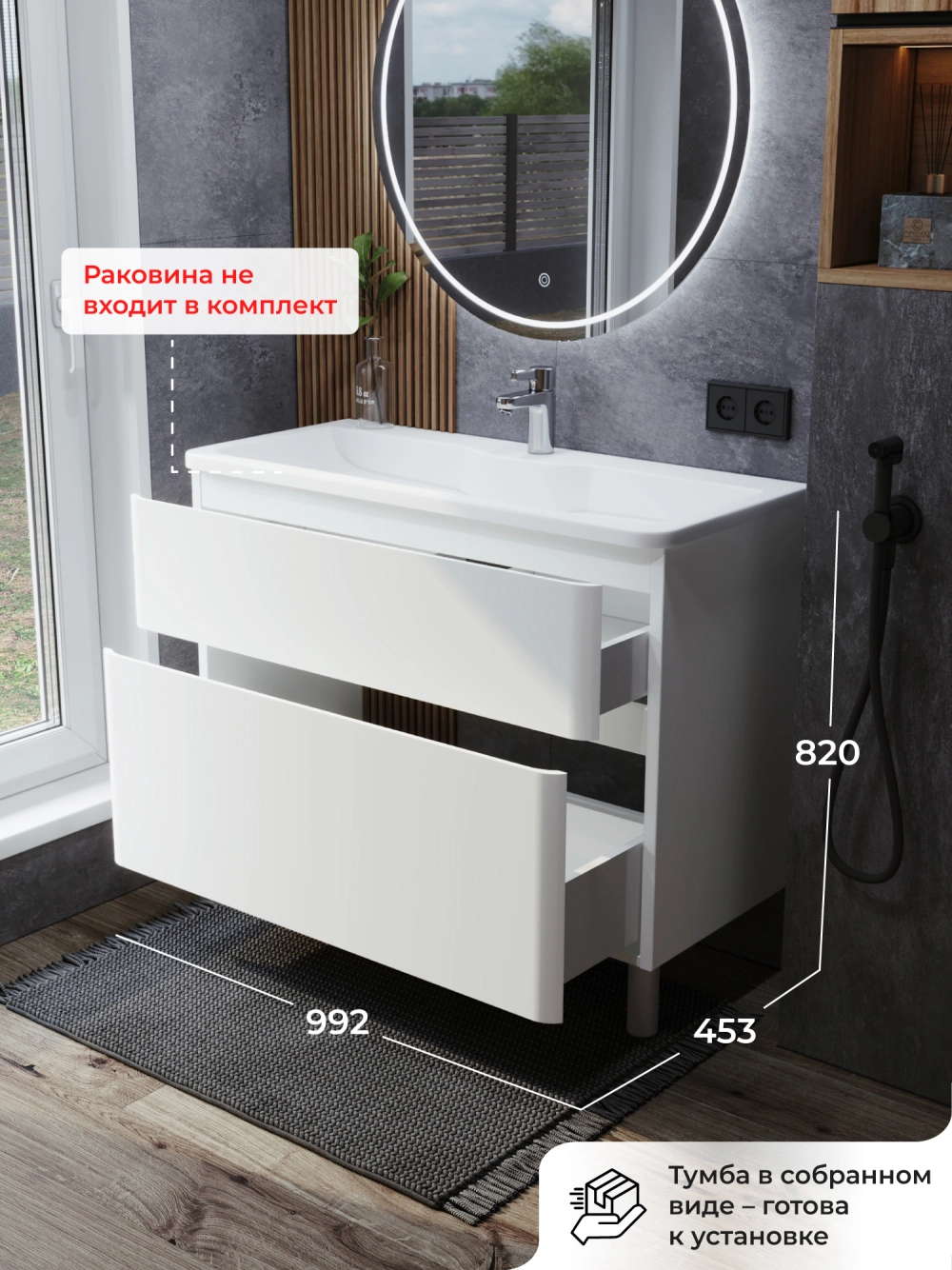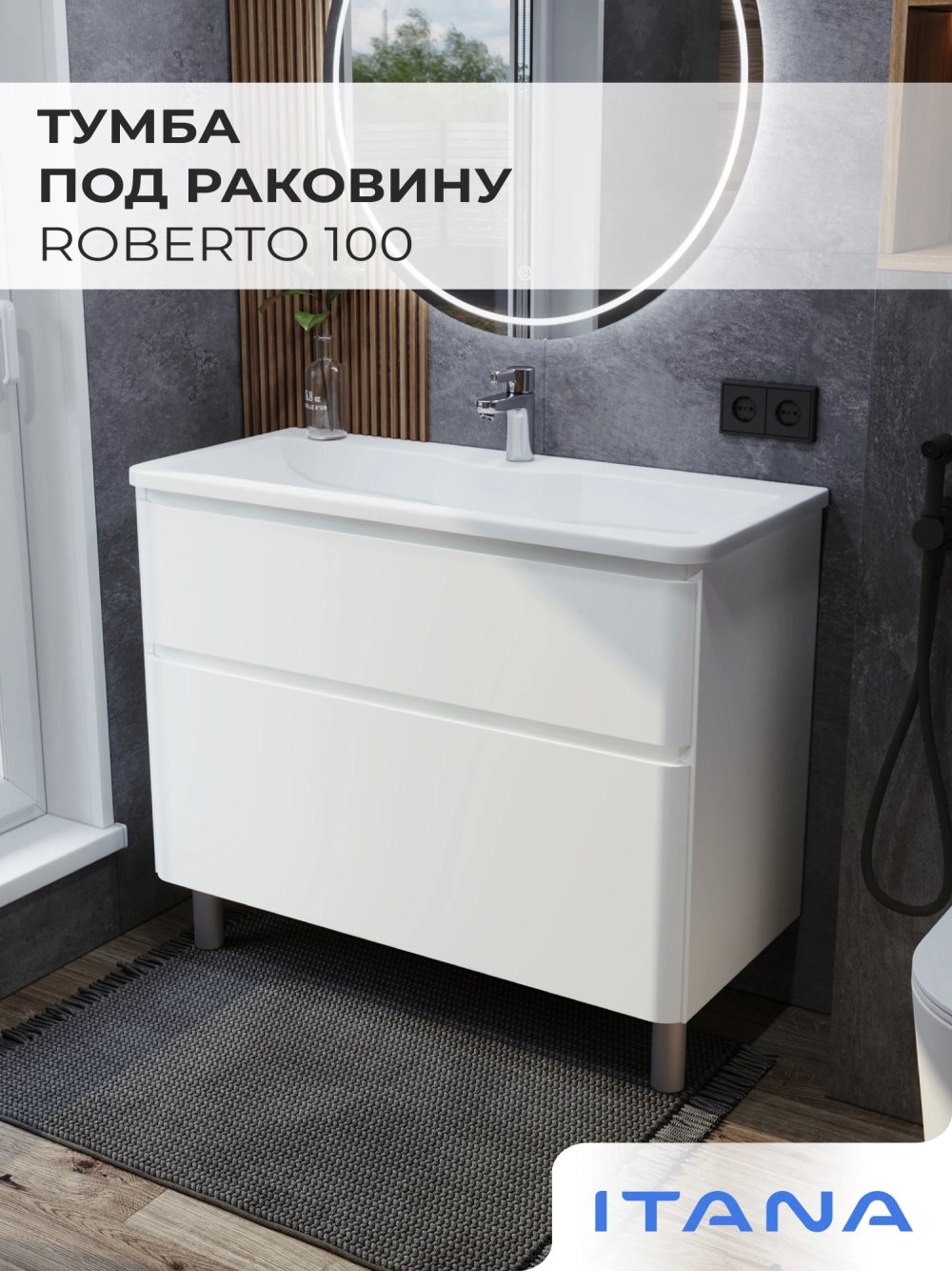 Тумба под раковину напольная Итана Roberto 100 с выдвижными ящиками Белый глянец