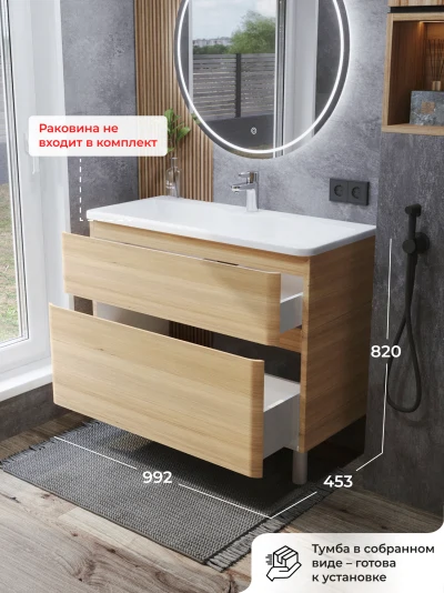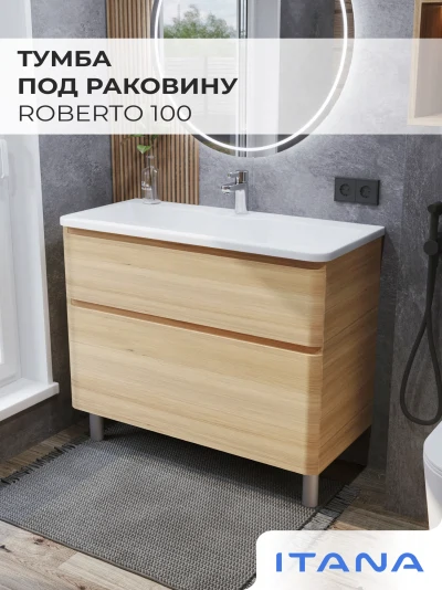 Тумба под раковину напольная Итана Roberto 100 с выдвижными ящиками Дуб Мавелла Голд