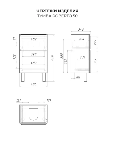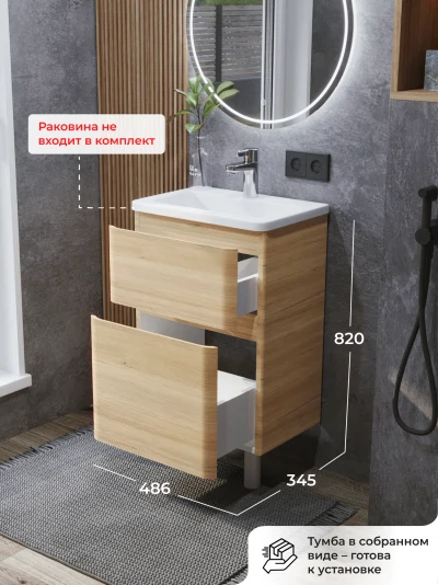 Тумба под раковину напольная Итана Roberto 50 с выдвижными ящиками Дуб Мавелла Голд