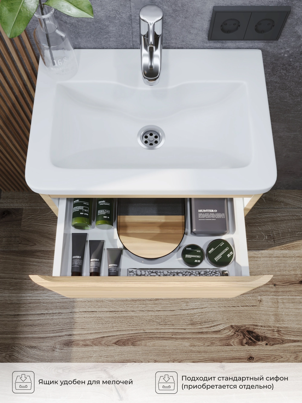 Напольная тумба под раковину в ванную из коллекции Roberto - это сочетание современной стилистики и богатого функционала. Тумба для ванны изготовлена из прочного МДФ, поэтому выдерживает высокие эксплуатационные нагрузки. Корпус и фасады тумбы для ванной покрыты пленкой, что обеспечивает дополнительную защиту тумбы под раковину от влаги и перепадов температуры. Качественная фурнитура с доводчиками обеспечивает легкое открывание и плавное закрывание ящиков. Вырез под сифон универсальный, для любого типа. Благодаря своей конструкции тумба обеспечивает удобный доступ к раковине и позволяет скрыть коммуникации. Тумба под раковину в ванную оснащена удобным ящиком для хранения, что позволяет разместить всё необходимое под рукой. Ручки интегрированы в фасад, что исключает возможность случайного удара о фурнитуру. Для точного выбора тумбы под раковину в ванную комнату рекомендуем обратиться к схеме замеров, которая находится на фото в карточке товара, размеры изделия могут отличаться +/-1 см в связи со спецификой производства. Тумба для ванной доставляется в предварительно собранном виде, надежно упакована.