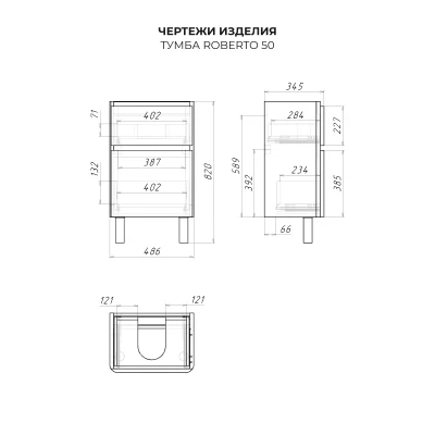 Тумба под раковину напольная Итана Roberto 50 с выдвижными ящиками Эмаль Белый глянец