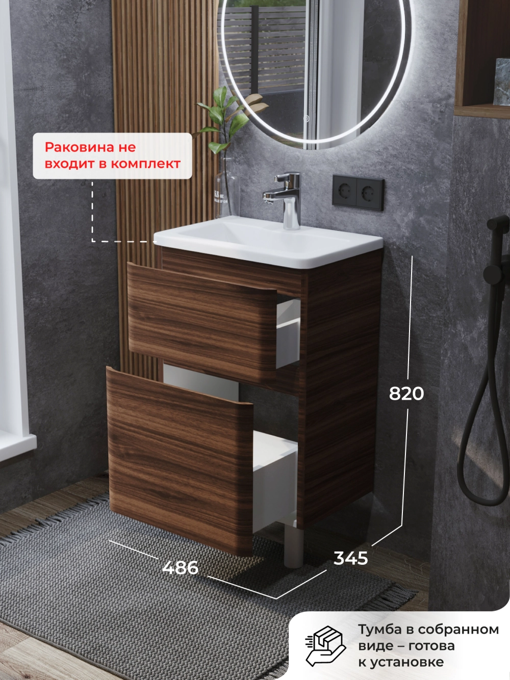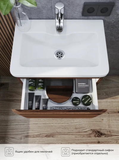 Тумба под раковину напольная Итана Roberto 50 с выдвижными ящиками Орех Пекан шоколад стронг