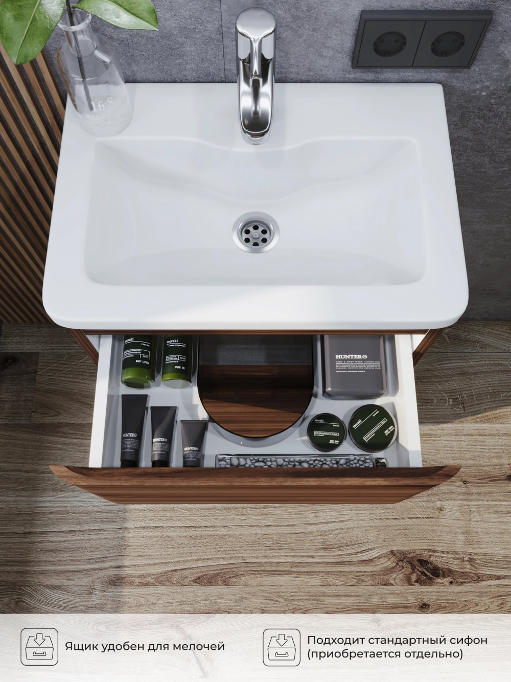 Напольная тумба под раковину в ванную из коллекции Roberto - это сочетание современной стилистики и богатого функционала. Тумба для ванны изготовлена из прочного МДФ, поэтому выдерживает высокие эксплуатационные нагрузки. Корпус и фасады тумбы для ванной покрыты пленкой, что обеспечивает дополнительную защиту тумбы под раковину от влаги и перепадов температуры. Качественная фурнитура с доводчиками обеспечивает легкое открывание и плавное закрывание ящиков. Вырез под сифон универсальный, для любого типа. Благодаря своей конструкции тумба обеспечивает удобный доступ к раковине и позволяет скрыть коммуникации. Тумба под раковину в ванную оснащена удобным ящиком для хранения, что позволяет разместить всё необходимое под рукой. Ручки интегрированы в фасад, что исключает возможность случайного удара о фурнитуру. Для точного выбора тумбы под раковину в ванную комнату рекомендуем обратиться к схеме замеров, которая находится на фото в карточке товара, размеры изделия могут отличаться +/-1 см в связи со спецификой производства. Тумба для ванной доставляется в предварительно собранном виде, надежно упакована.