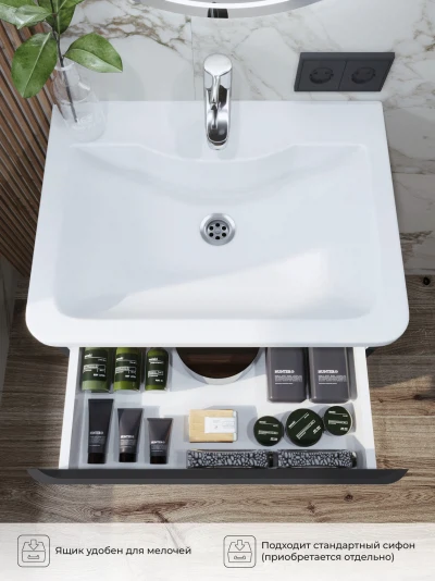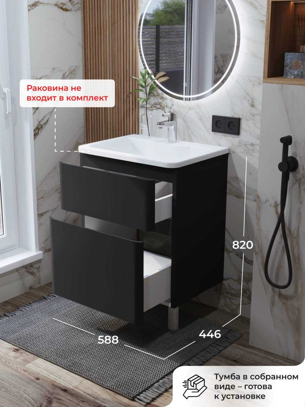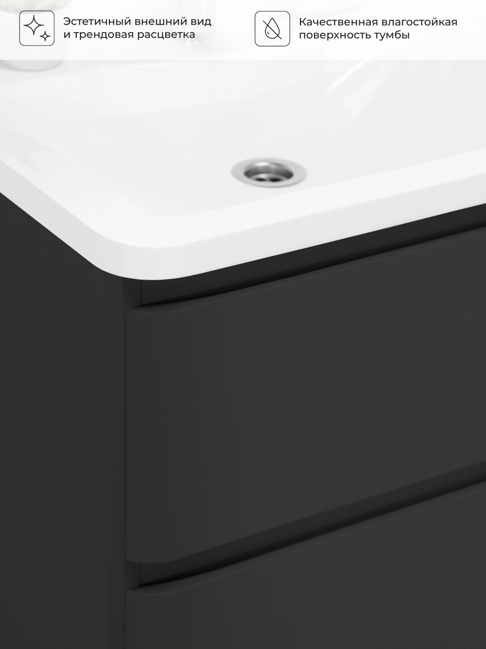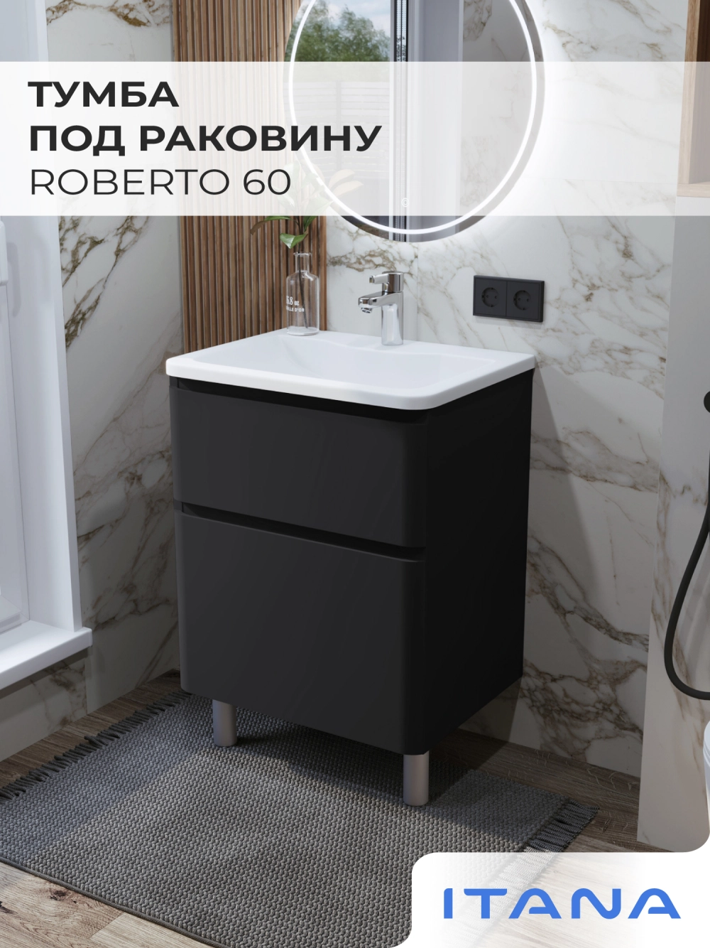 Тумба под раковину напольная Итана Roberto 60 с выдвижными ящиками Черный софт