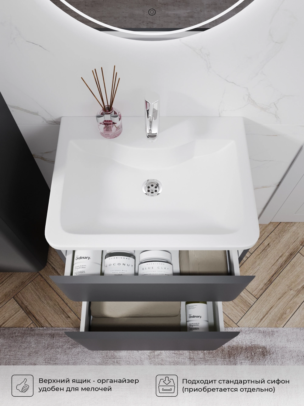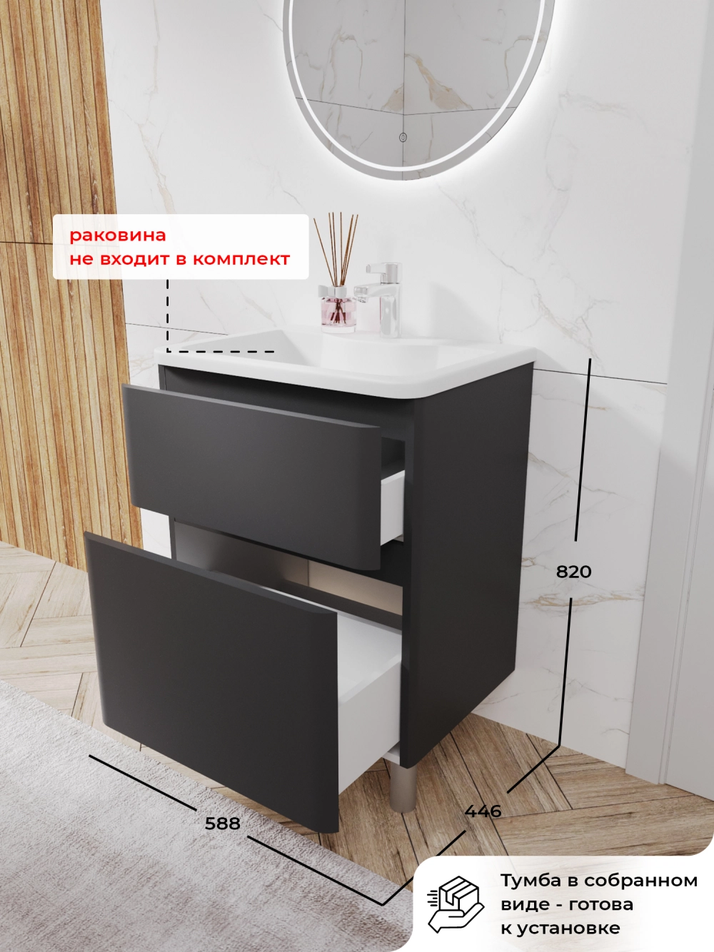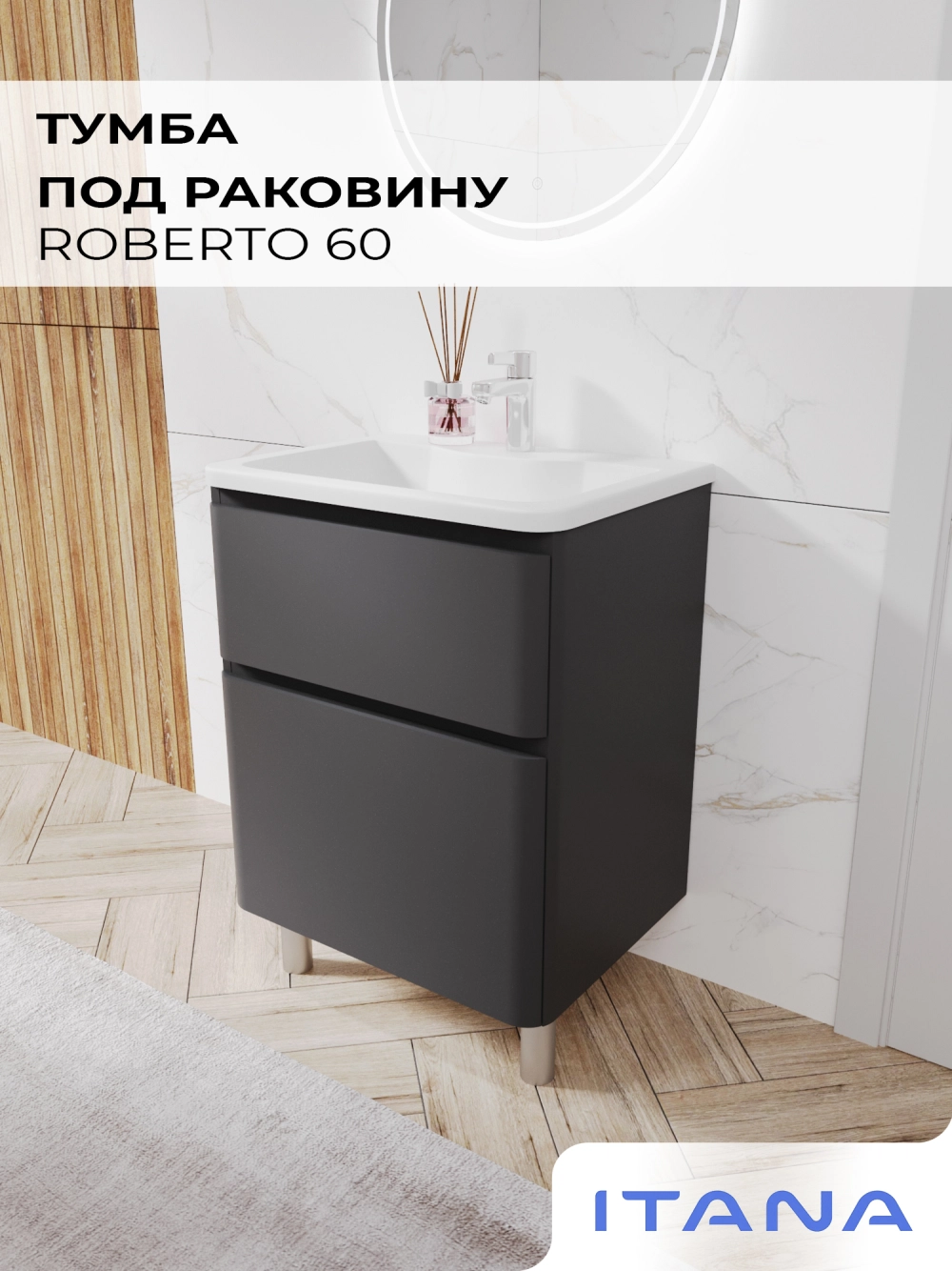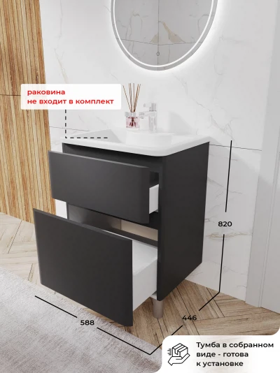 Тумба под раковину напольная Итана Roberto 60 с выдвижными ящиками Графит