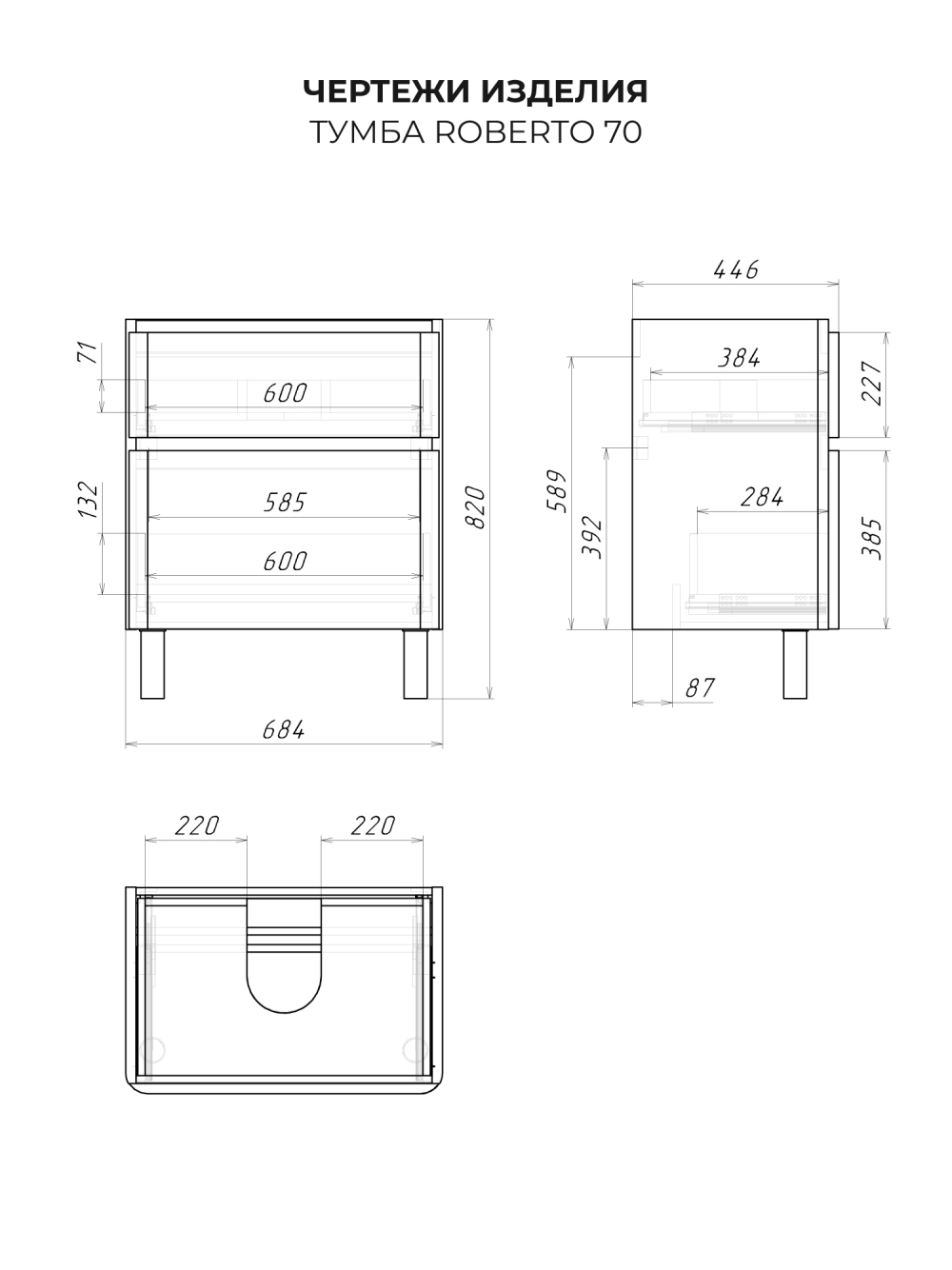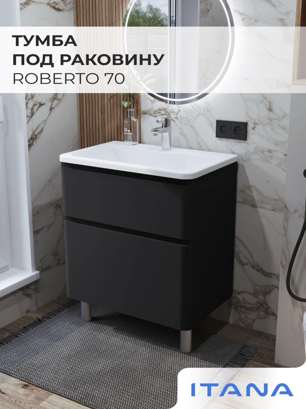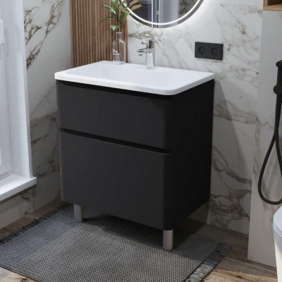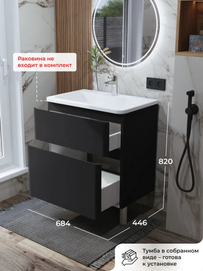 Тумба под раковину напольная Итана Roberto 70 с выдвижными ящиками Черный софт