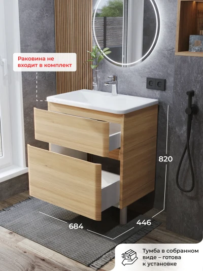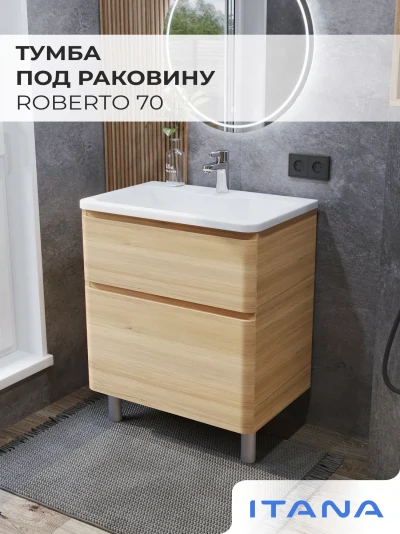 Тумба под раковину напольная Итана Roberto 70 с выдвижными ящиками Дуб Мавелла Голд