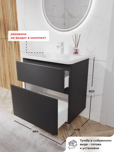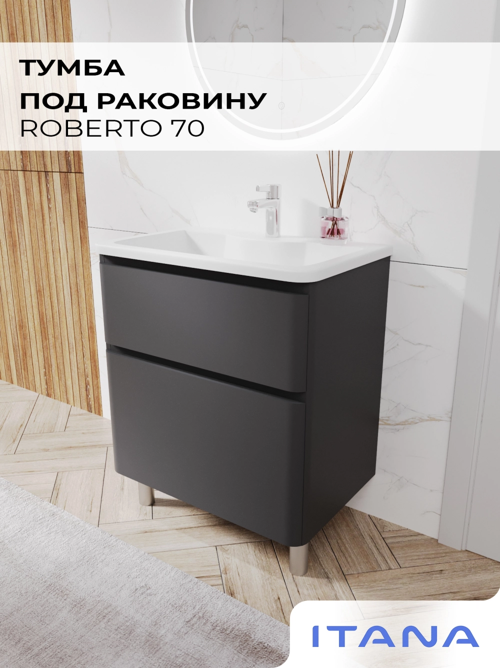 Тумба под раковину напольная Итана Roberto 70 с выдвижными ящиками Графит