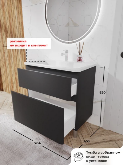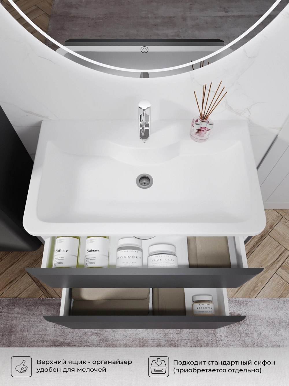 Тумба под раковину напольная Итана Roberto 80 с выдвижными ящиками Графит