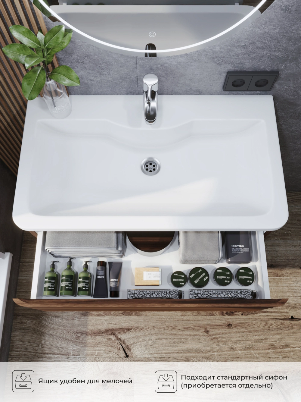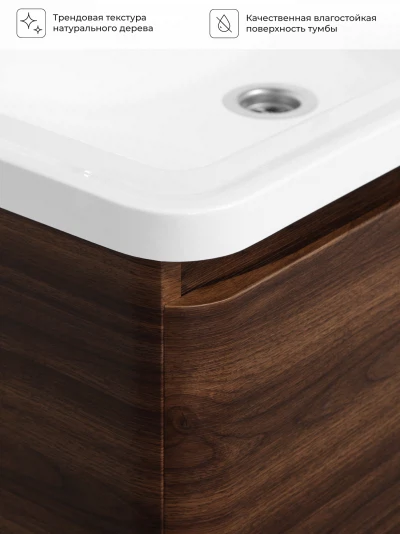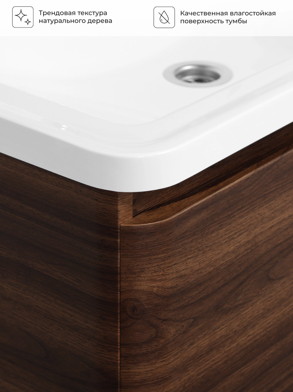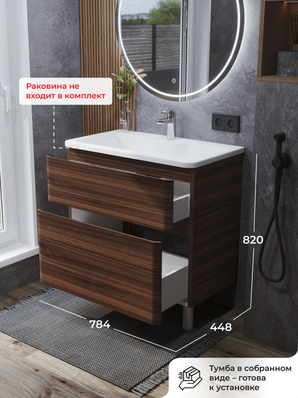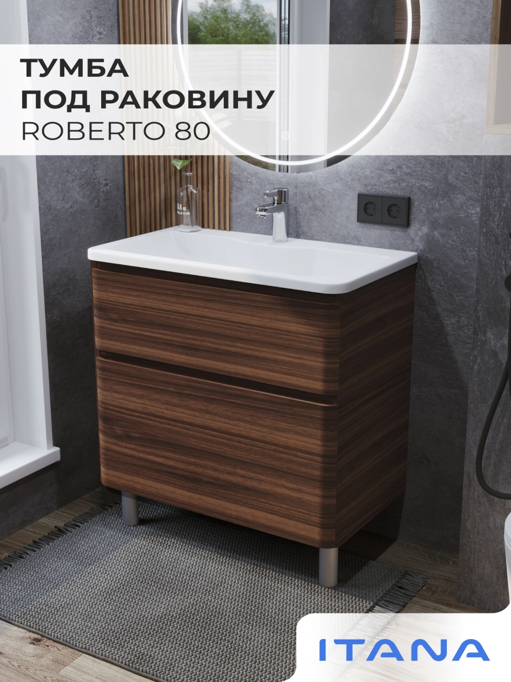 Тумба под раковину напольная Итана Roberto 80 с выдвижными ящиками Орех Пекан шоколад стронг