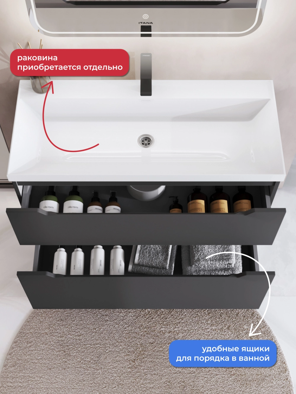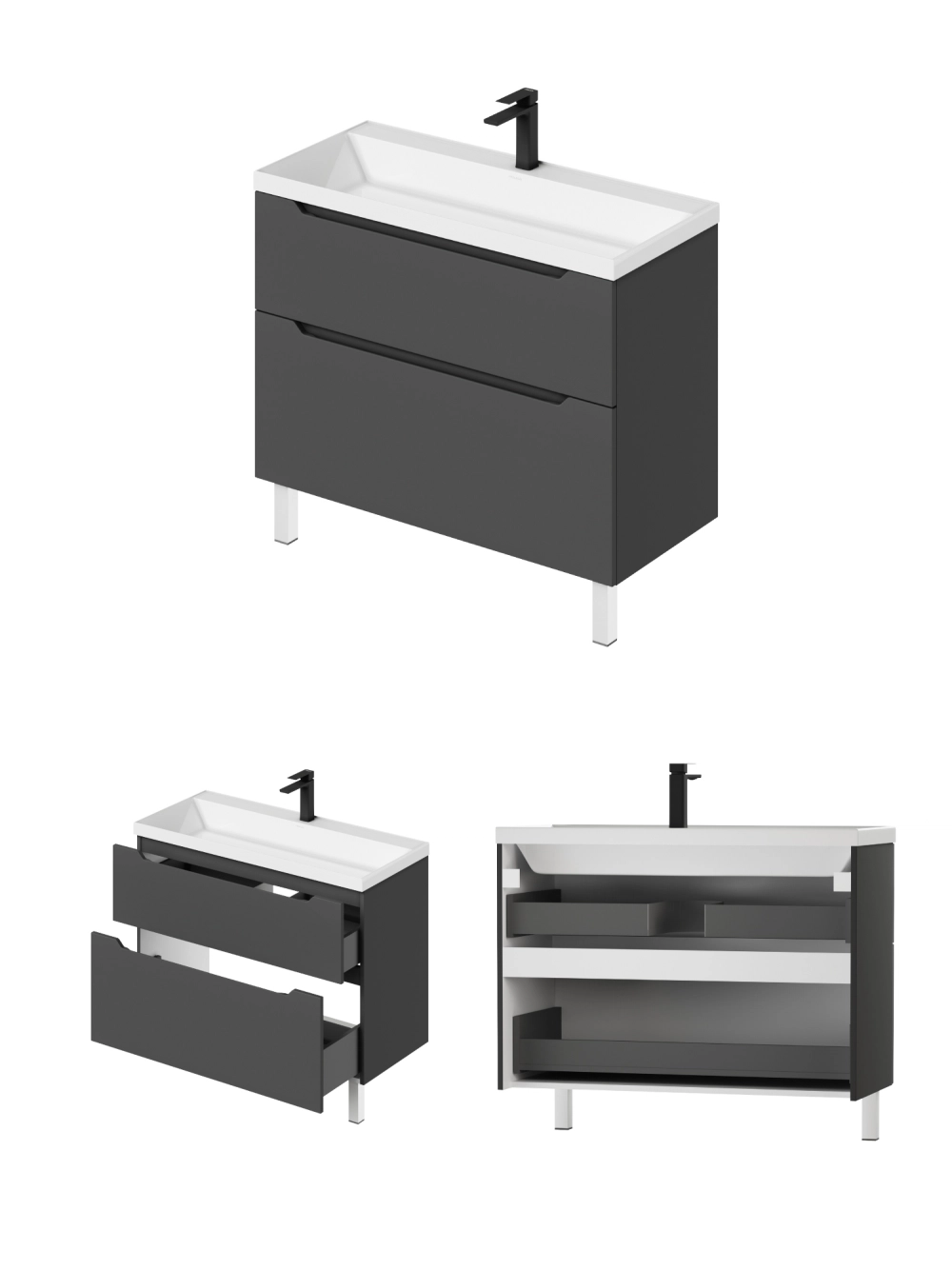 Тумба под раковину напольная Итана Alara 100 с выдвижными ящиками Графит