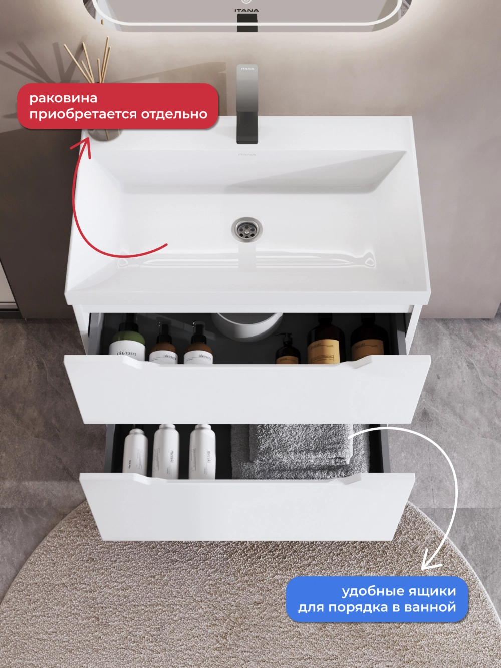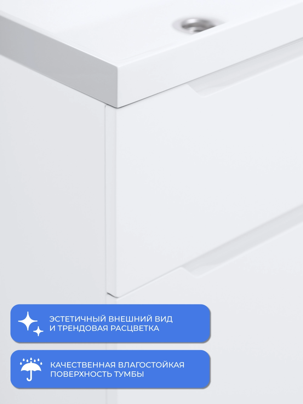 Тумба под раковину напольная Итана Alara 70 с выдвижными ящиками Белый глянец