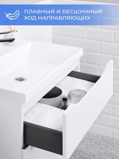 Напольная тумба под раковину в ванную из коллекции Alara - это сочетание современной стилистики и богатого функционала. Тумба для ванны изготовлена из прочного МДФ, поэтому выдерживает высокие эксплуатационные нагрузки. Корпус и фасады тумбы для ванной покрыты пленкой ПВХ, что обеспечивает дополнительную защиту тумбы под раковину от влаги и перепадов температуры. Качественная фурнитура с доводчиками обеспечивает легкое открывание и плавное закрывание ящиков. Вырез под сифон универсальный, для любого типа. Тумба в ванную оснащена двумя удобными ящиками для хранения, что позволяет разместить всё необходимое под рукой. Для точного выбора тумбы в ванную комнату рекомендуем обратиться к схеме замеров, которая находится на фото в карточке товара, размеры изделия могут отличаться +/-1 см в связи со спецификой производства. Напольная тумба для ванной доставляется в предварительно собранном виде, надежно упакована.