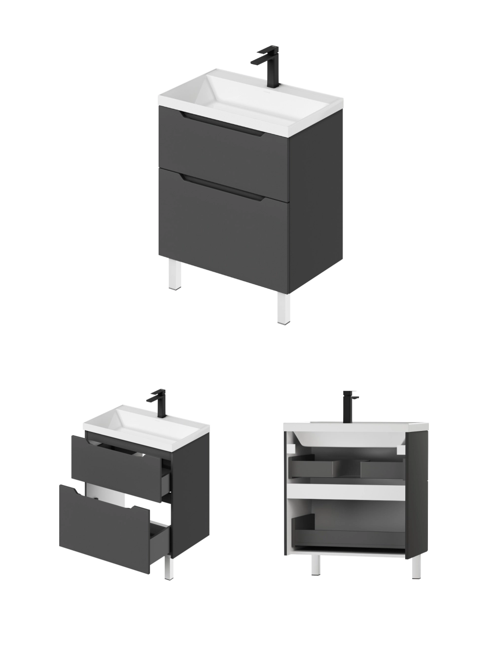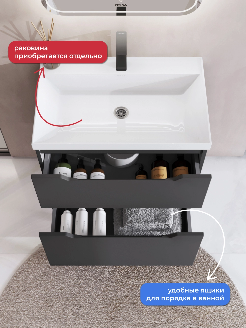 Тумба под раковину напольная Итана Alara 70 с выдвижными ящиками Графит