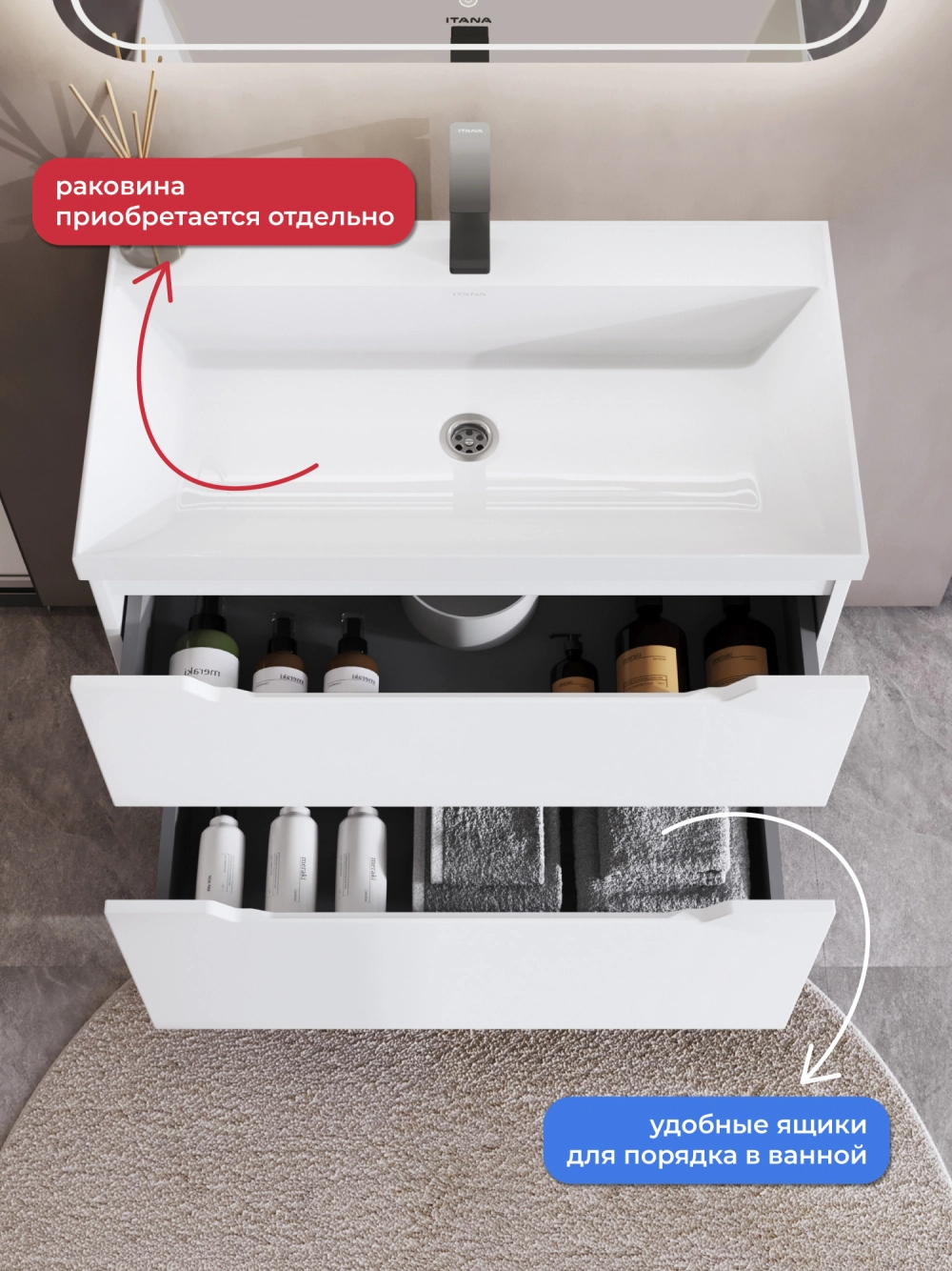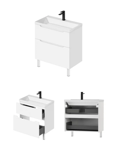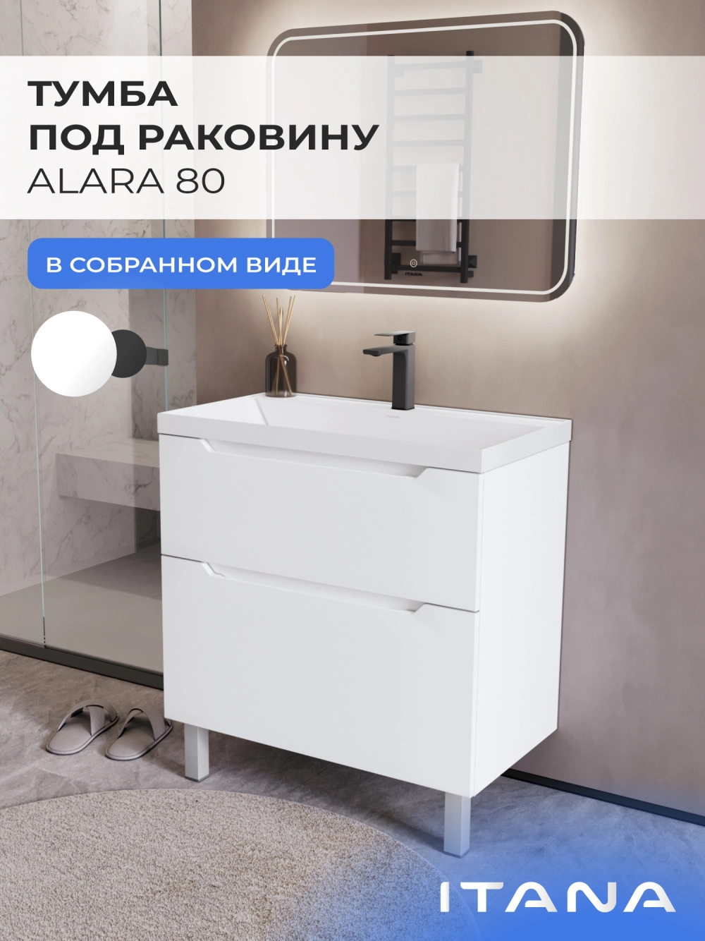Тумба под раковину напольная Итана Alara 80 с выдвижными ящиками Белый глянец
