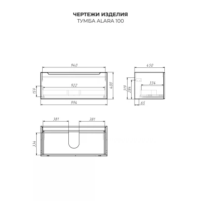 Тумба под раковину подвесная Итана Alara 100 с выдвижным ящиком Белый глянец