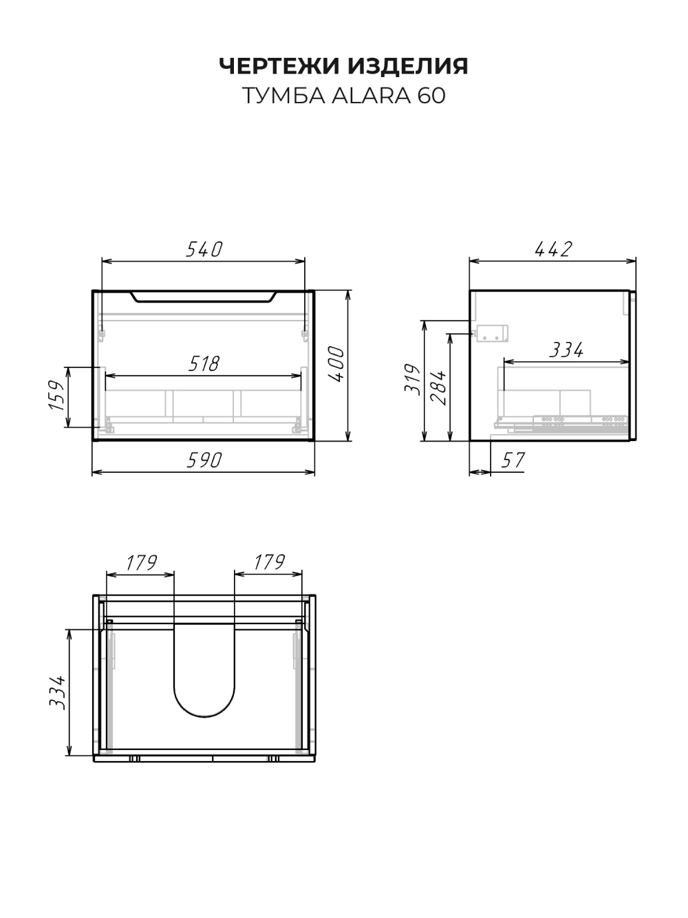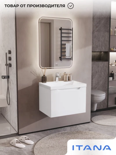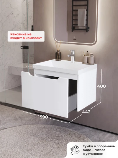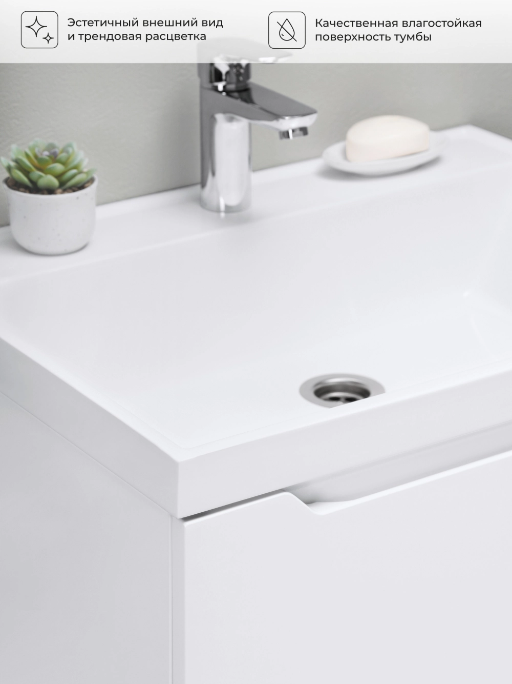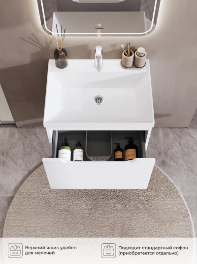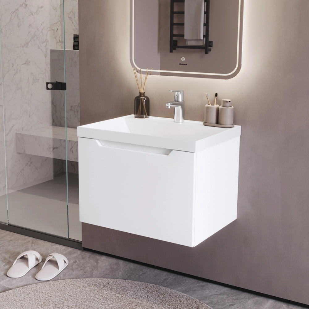 Тумба под раковину подвесная Итана Alara 60 с выдвижным ящиком Белый глянец