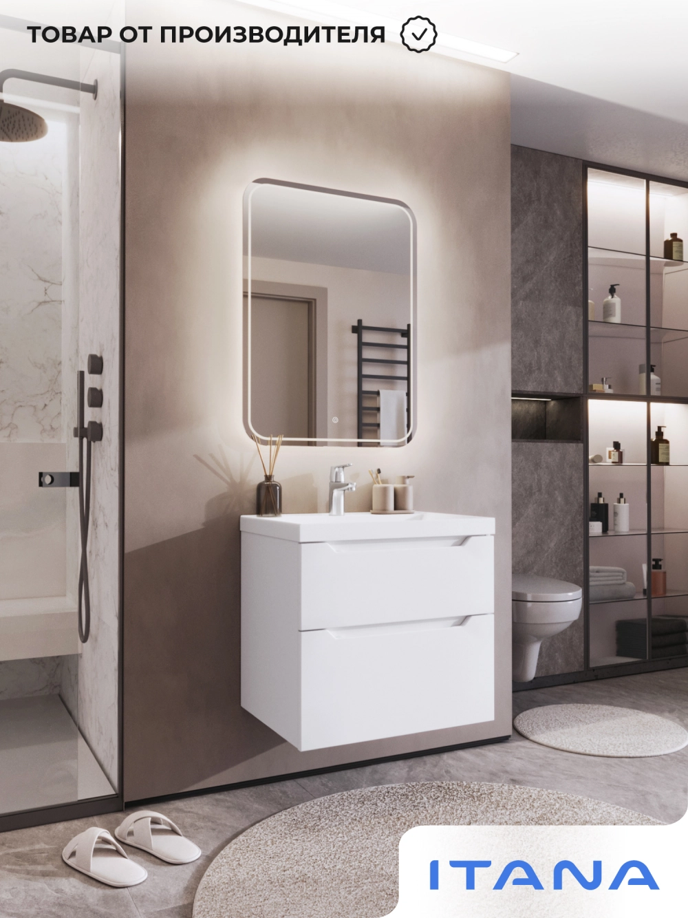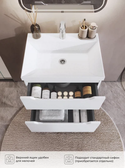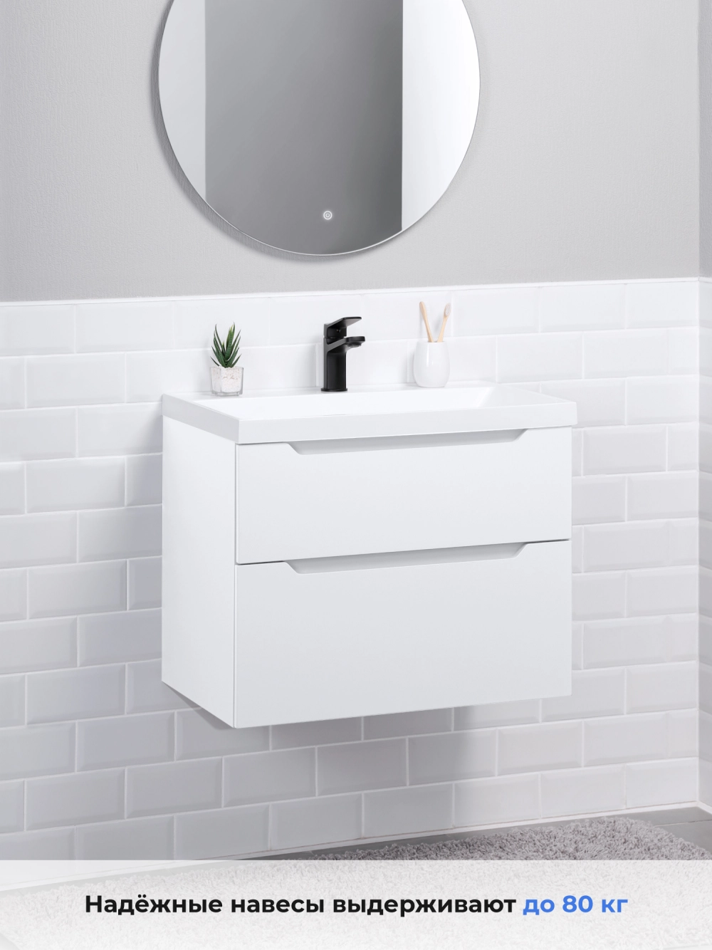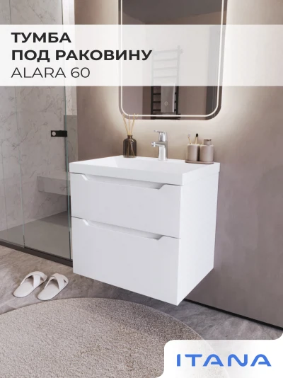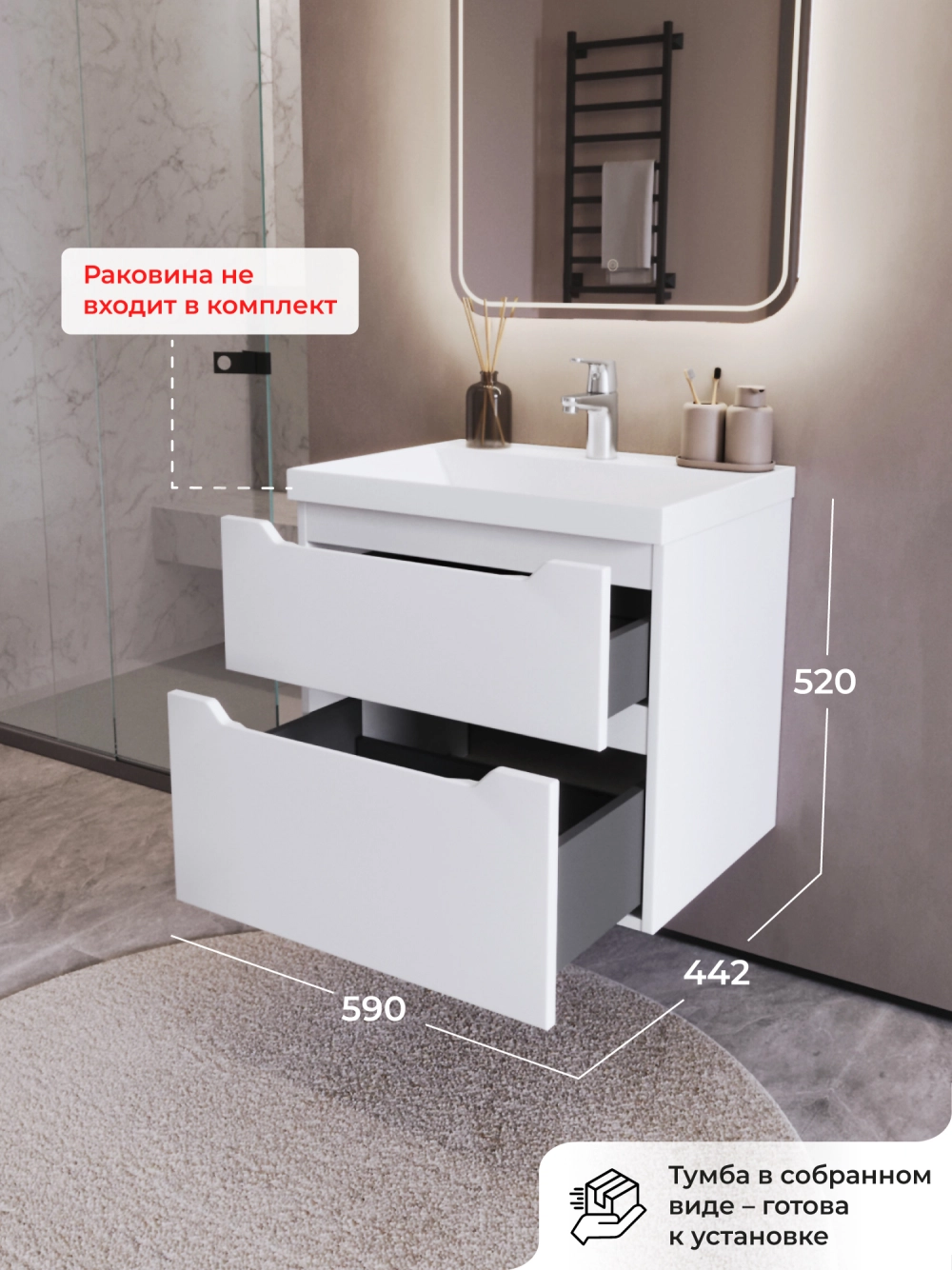 Тумба под раковину подвесная Итана Alara 60 с выдвижными ящиками Белый глянец