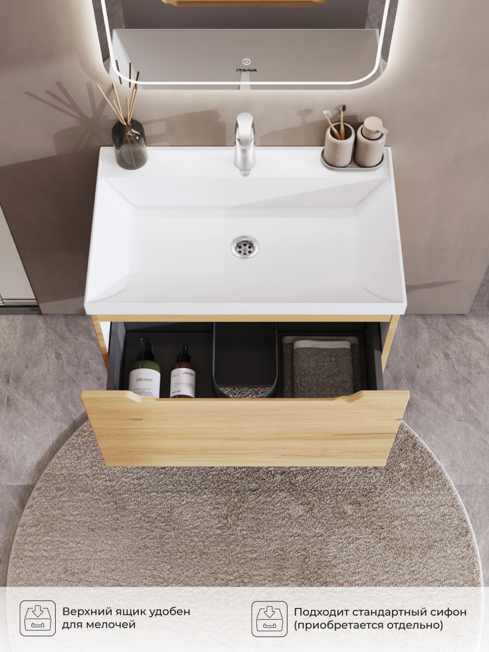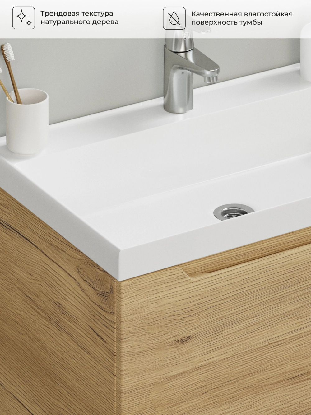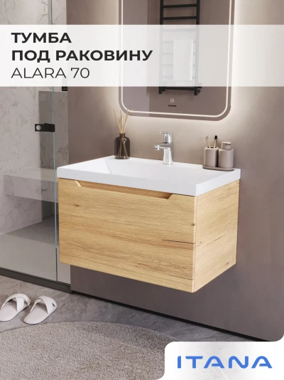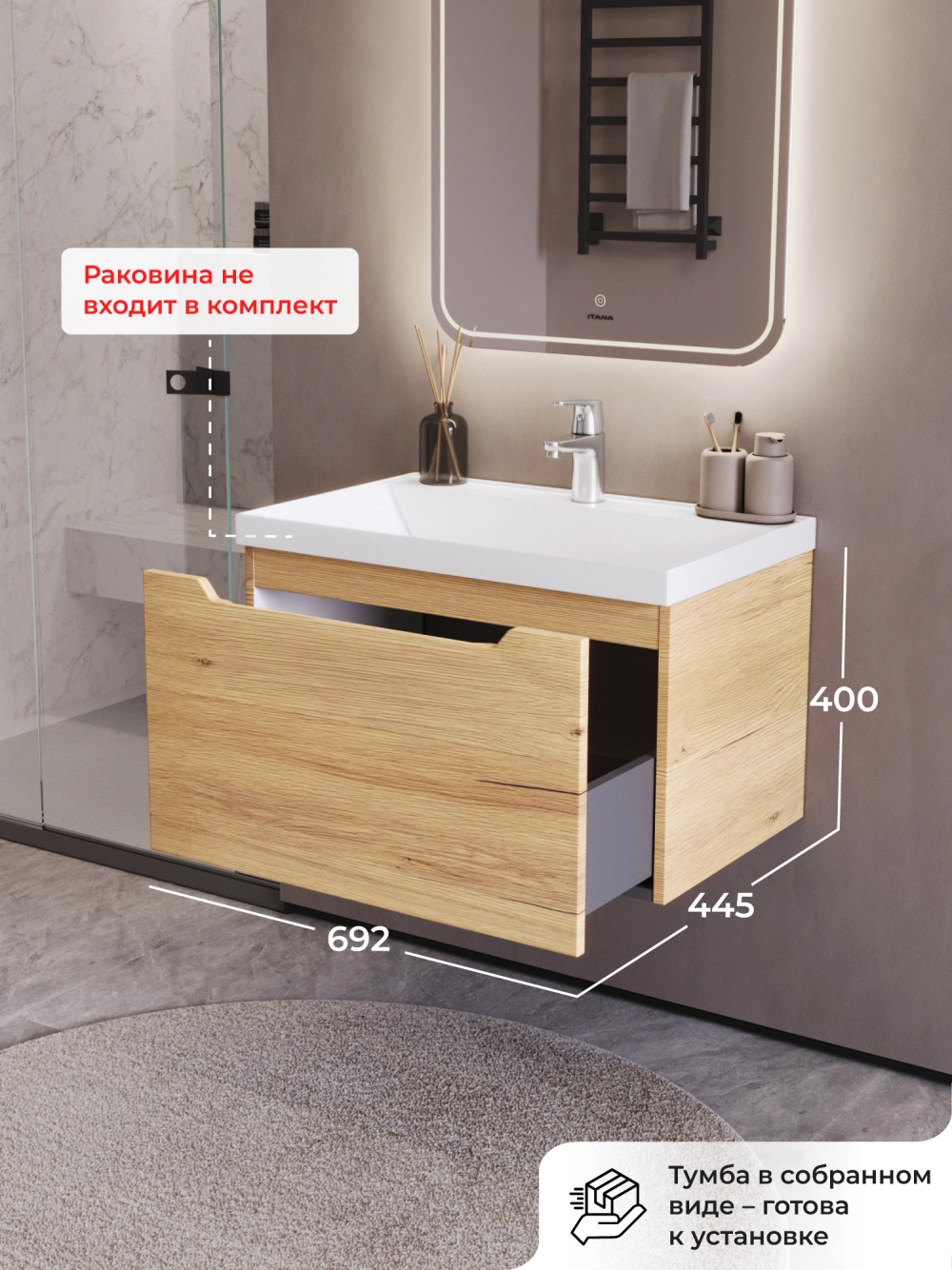 Тумба под раковину подвесная Итана Alara 70 с выдвижным ящиком Дуб Мавелла Голд
