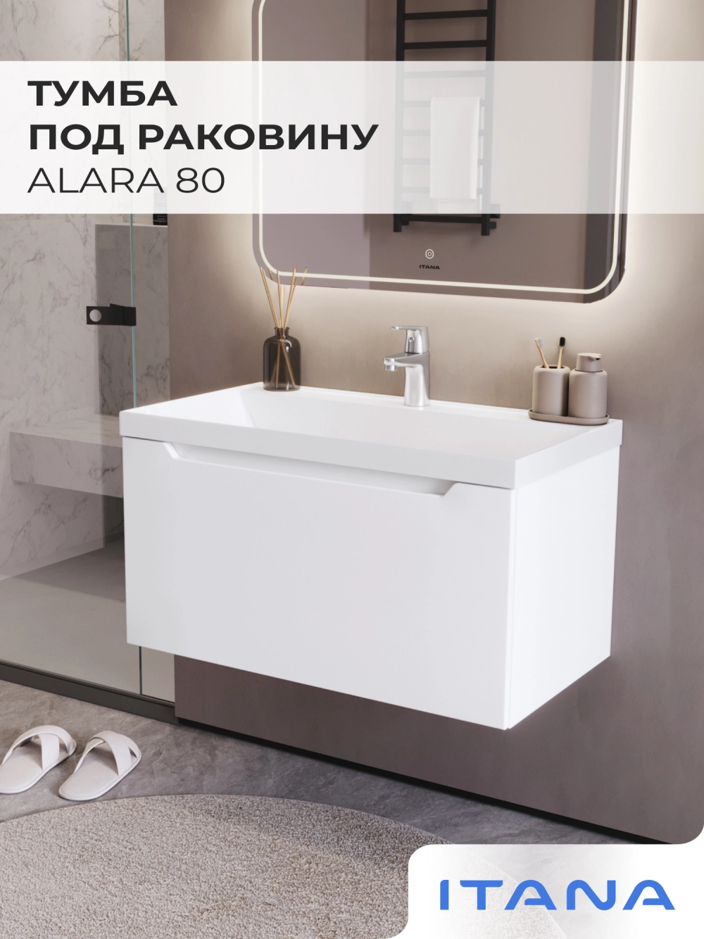 Представляем вашему вниманию стильную подвесную тумбу под раковину Итана Alara, выполненную белом цвете. Этот аксессуар для ванной комнаты идеально сочетает в себе функциональность и современный дизайн. Размеры тумбы обеспечивают достаточное пространство для хранения необходимых предметов.<br>Благодаря своему лаконичному и компактному дизайну, этот элемент мебели не только делает пространство более стильным, но и помогает эффективно организовать хранение. Она станет отличным решением для тех, кто ценит минимализм и удобство. Подвесная тумба обеспечивает легкость уборки под ней и визуально увеличивает пространство. Изготавливается из качественных материалов, что гарантирует долговечность и износостойкость. Конструкция предполагает простоту монтажа и эксплуатации. Тумба обязательно дополнит вашу ванную, сделает её более уютной и функциональной.
