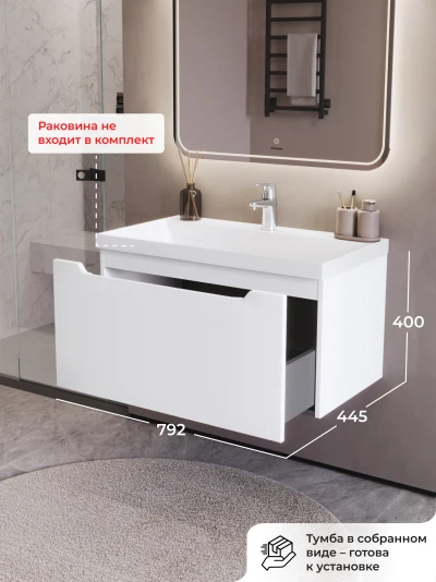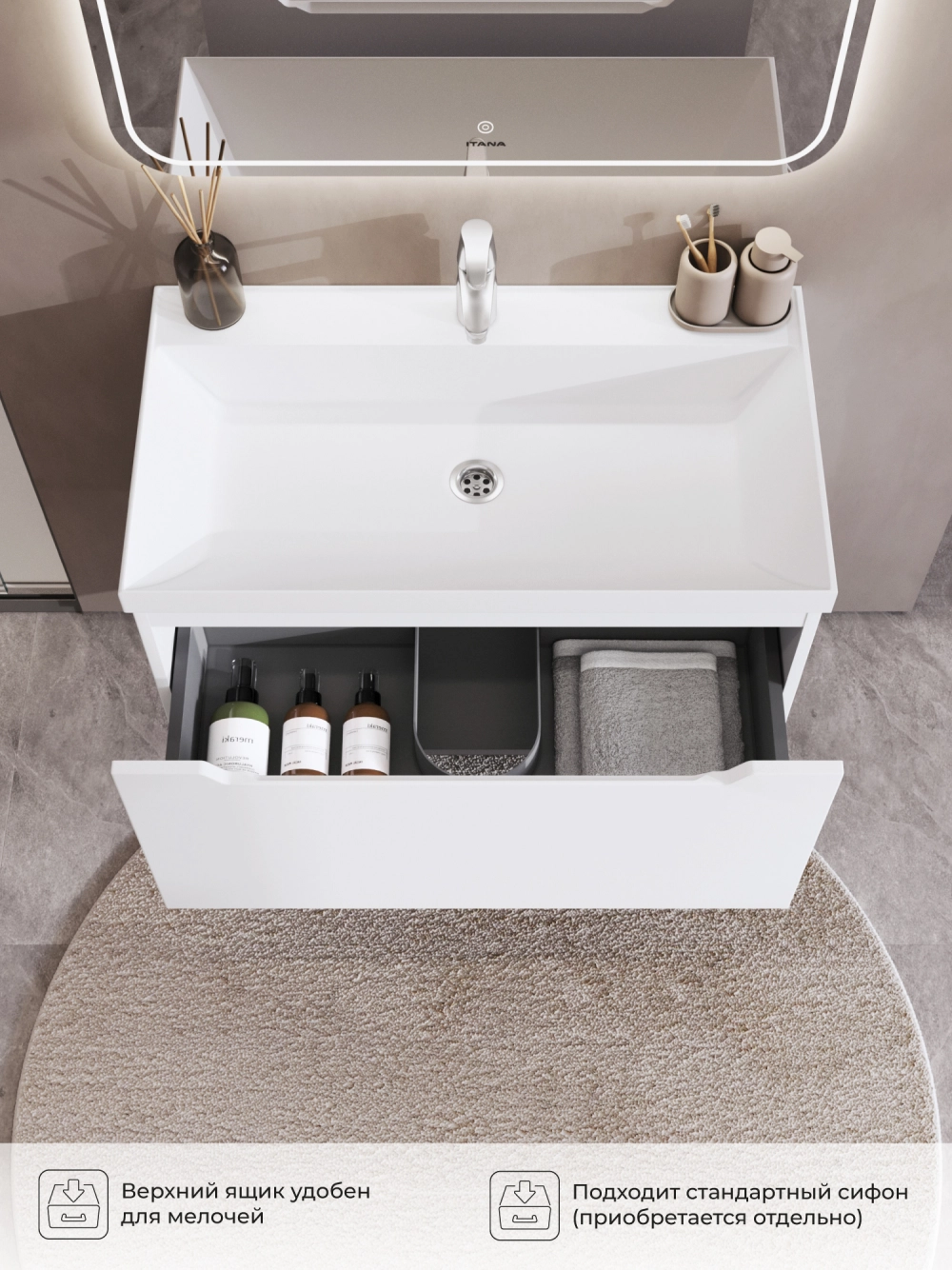 Тумба под раковину подвесная Итана Alara 80 с выдвижным ящиком Белый глянец
