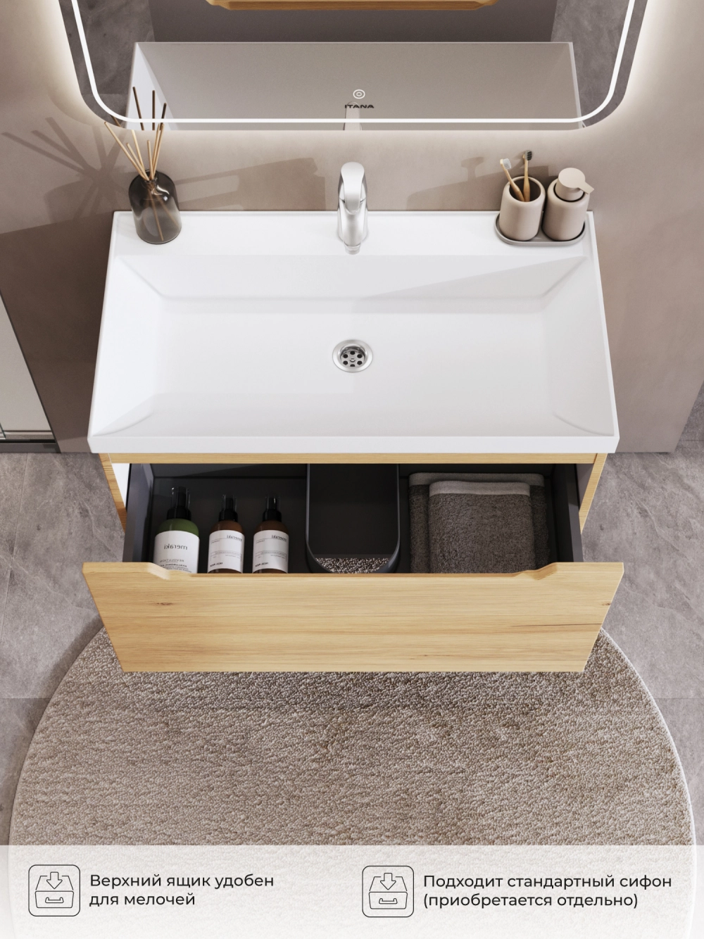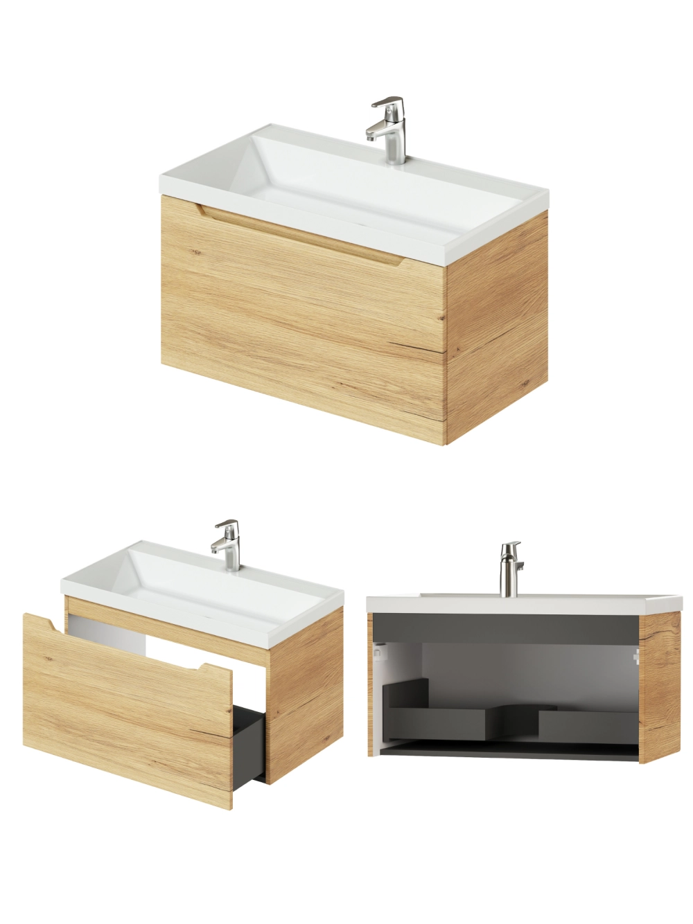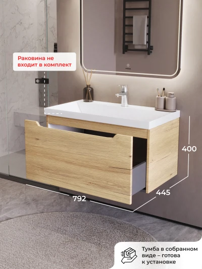 Тумба под раковину подвесная Итана Alara 80 с выдвижным ящиком Дуб Мавелла Голд