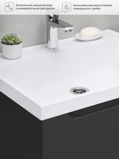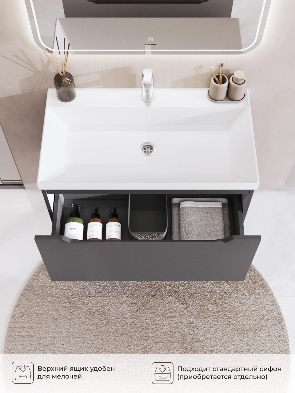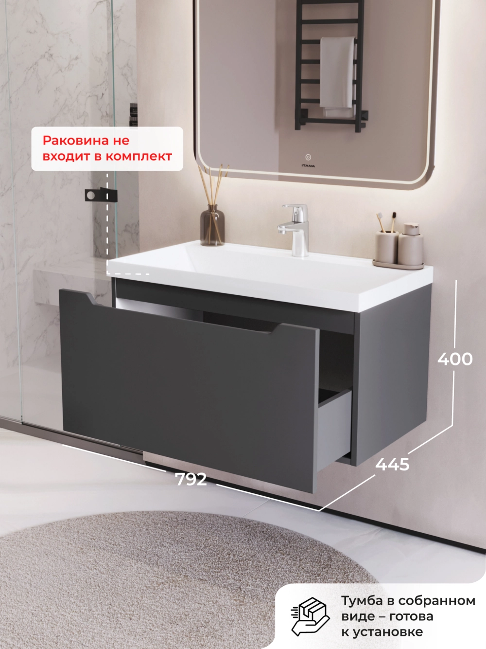 Тумба под раковину подвесная Итана Alara 80 с выдвижным ящиком Графит