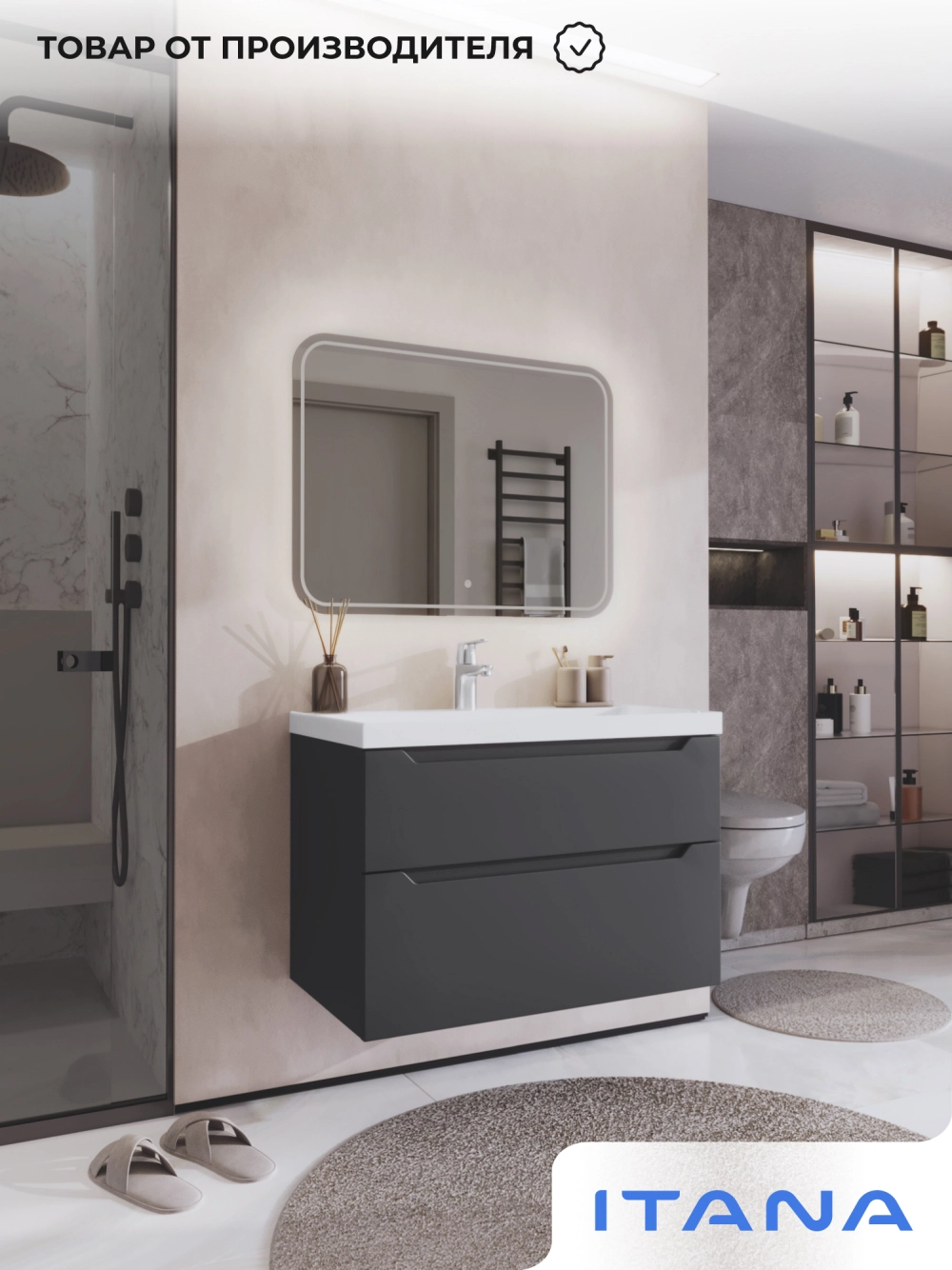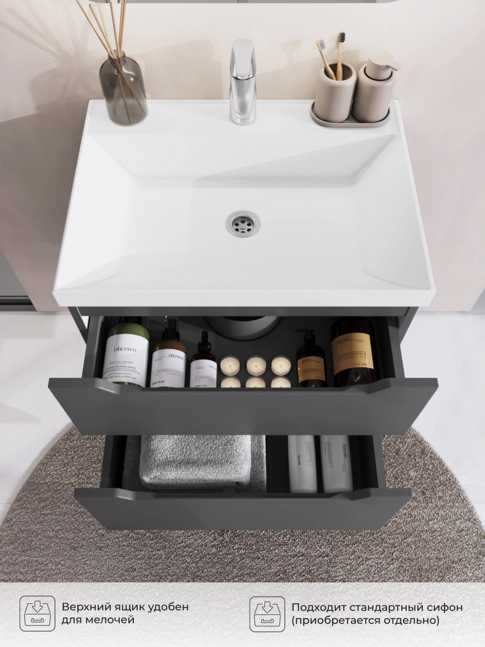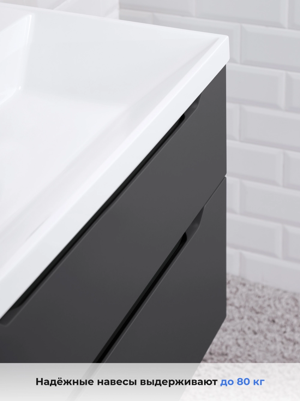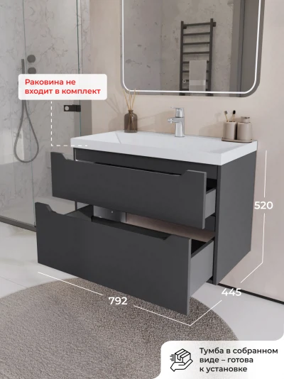 Тумба под раковину подвесная Итана Alara 80 с выдвижными ящиками Графит
