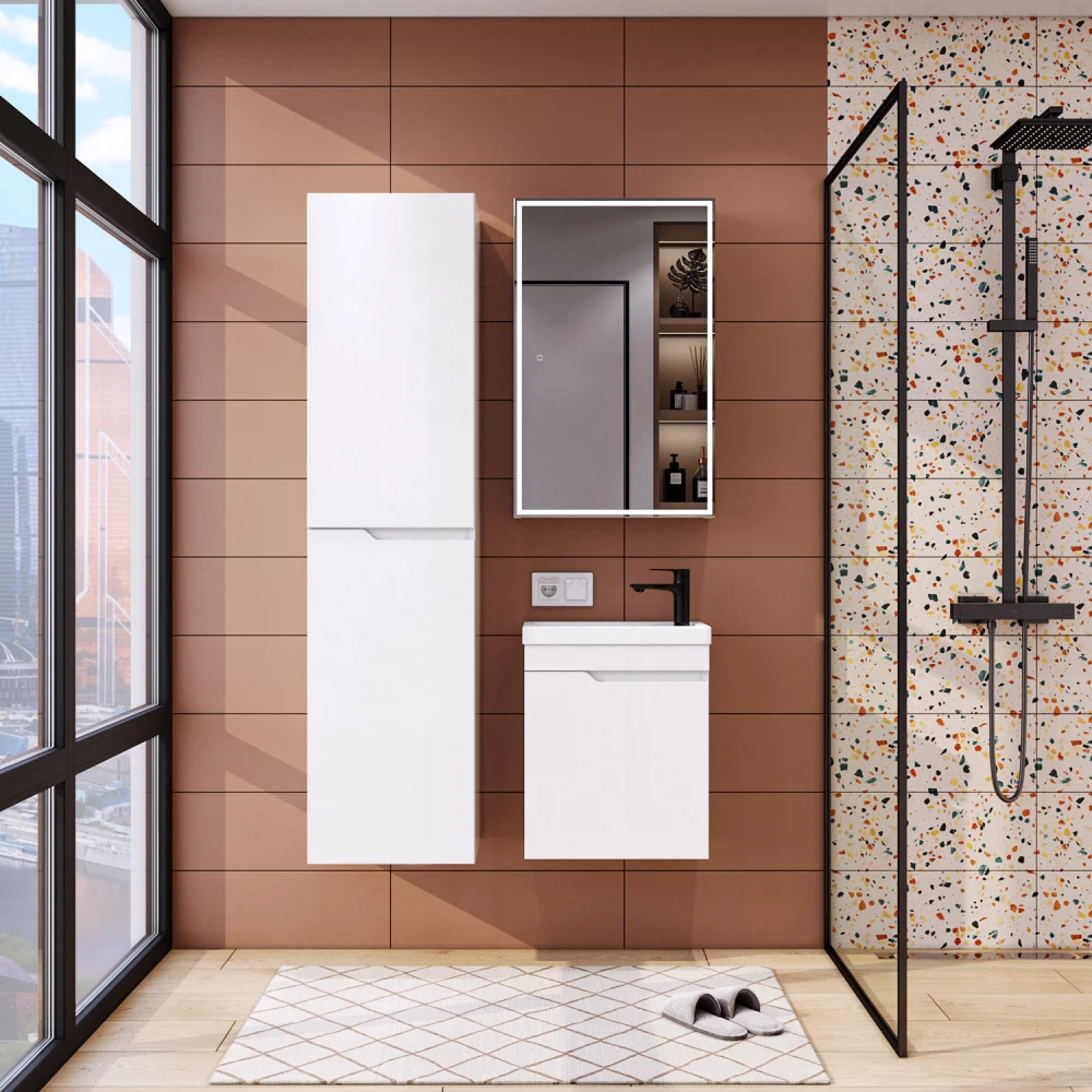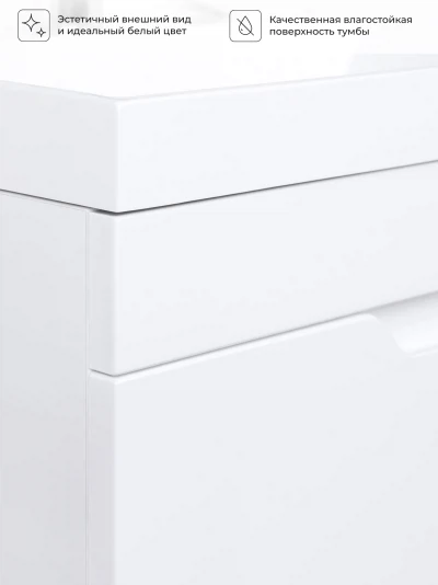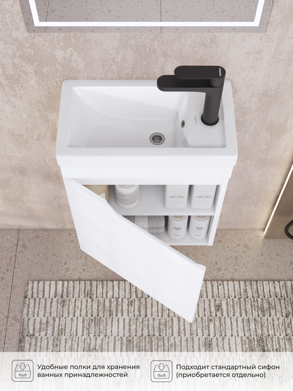Тумба под раковину подвесная Итана Alexa 45 с распашной дверцей левая узкая Белый глянец