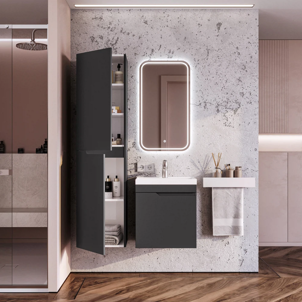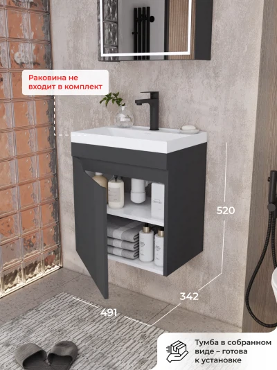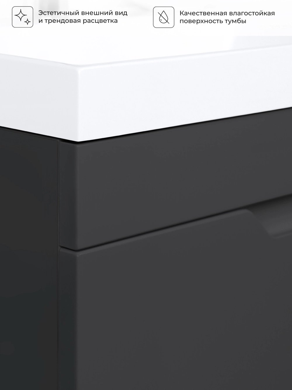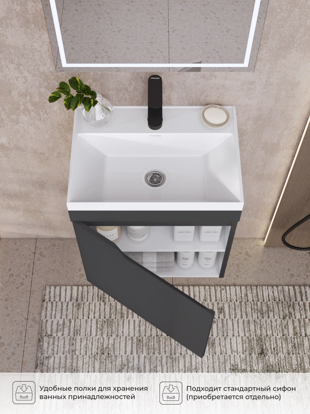 Тумба под раковину подвесная Итана Alexa 50 с распашной дверцей левый Графит