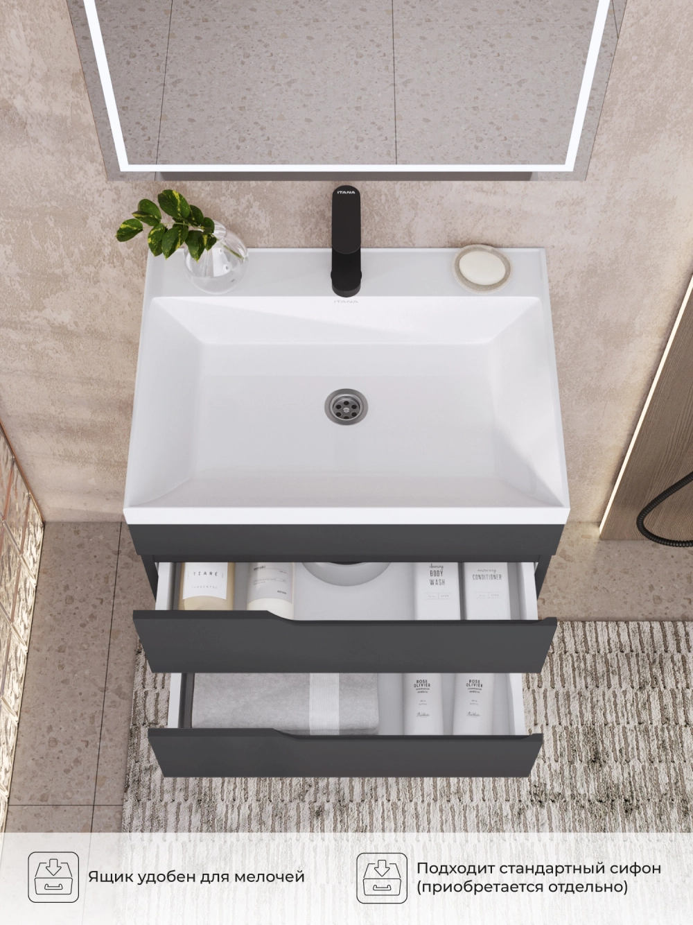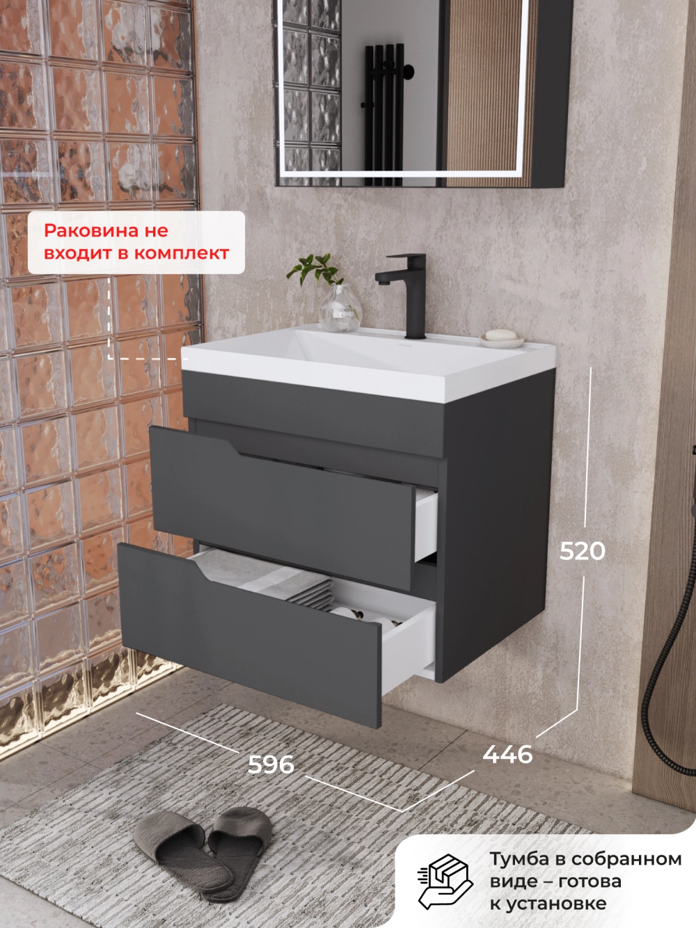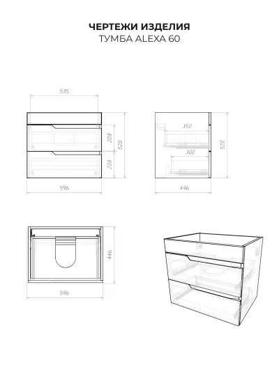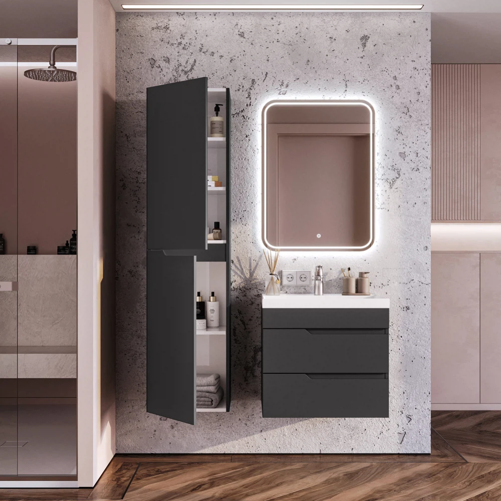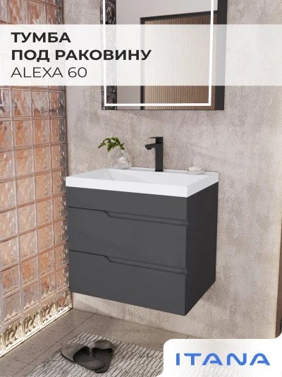 Тумба под раковину подвесная Итана Alexa 60 с выдвижными ящиками Графит
