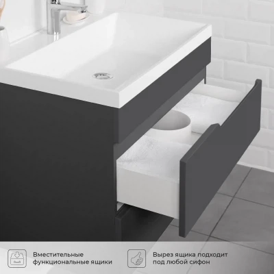 Тумба под раковину подвесная Итана Alexa 60 с выдвижными ящиками Графит