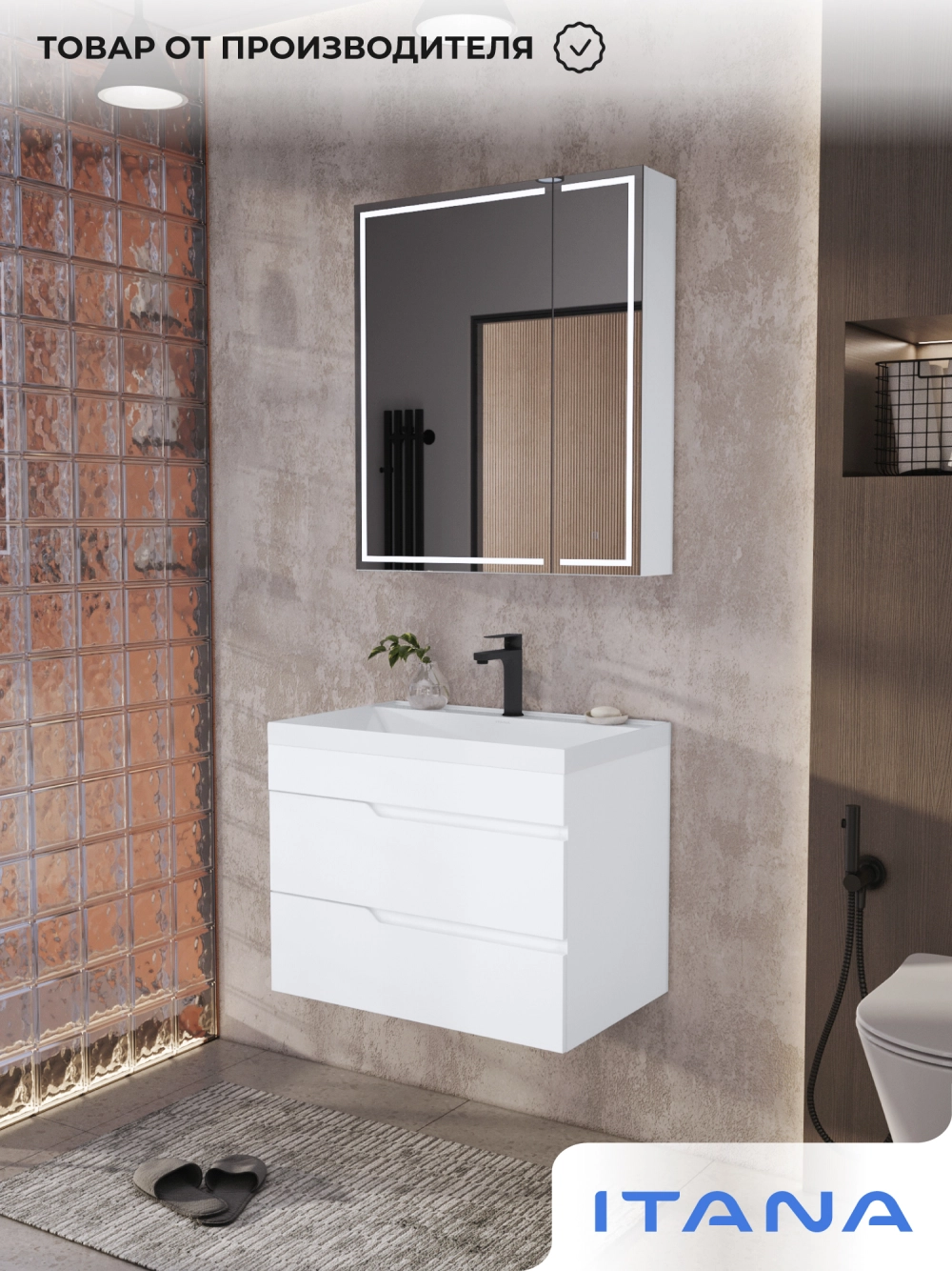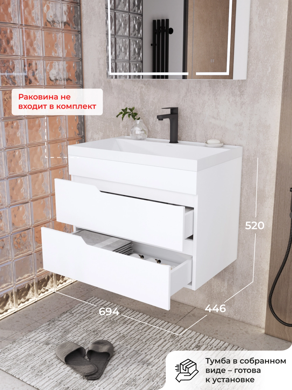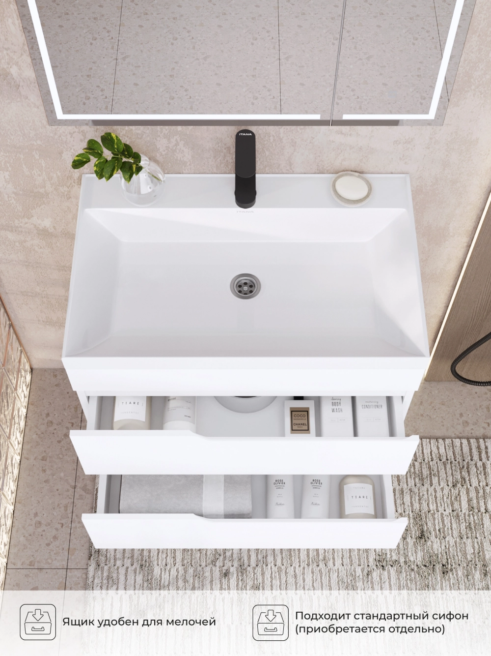 Тумба под раковину подвесная Итана Alexa 70 с выдвижными ящиками Белый глянец