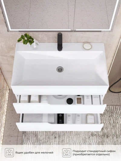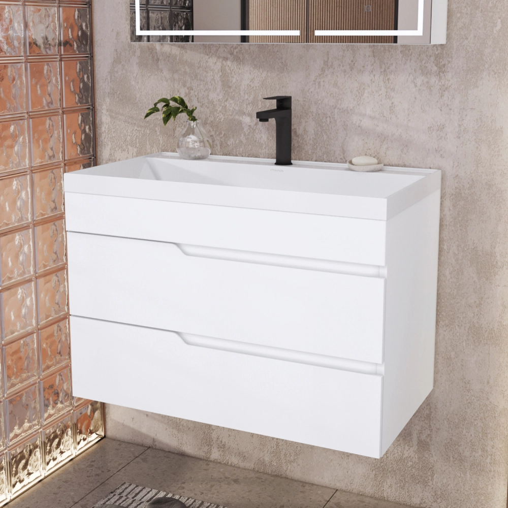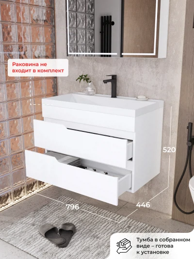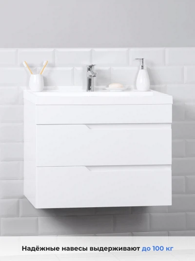 Тумба под раковину подвесная Итана Alexa 80 с выдвижными ящиками Белый глянец