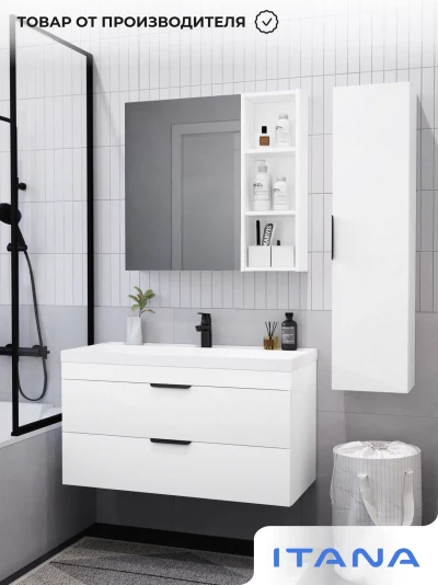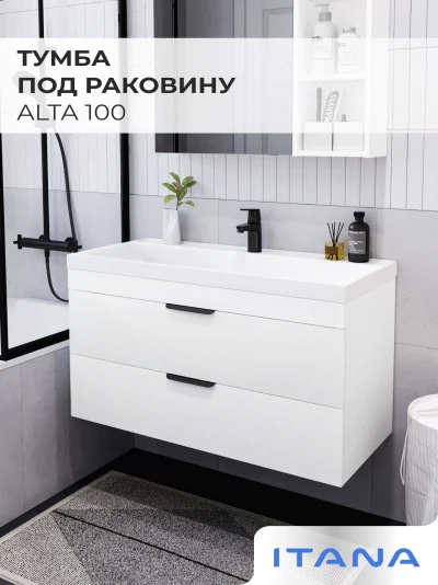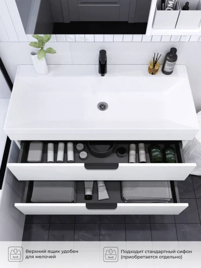 Тумба под раковину подвесная Итана Alta 100 с выдвижными ящиками под умывальник Clarissa 100 Белый Скандинавский