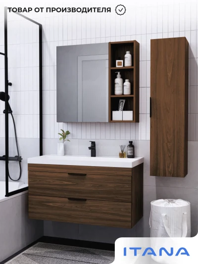 Тумба под раковину подвесная Итана Alta 100 с выдвижными ящиками под умывальник Clarissa 100 Дуб бурбон