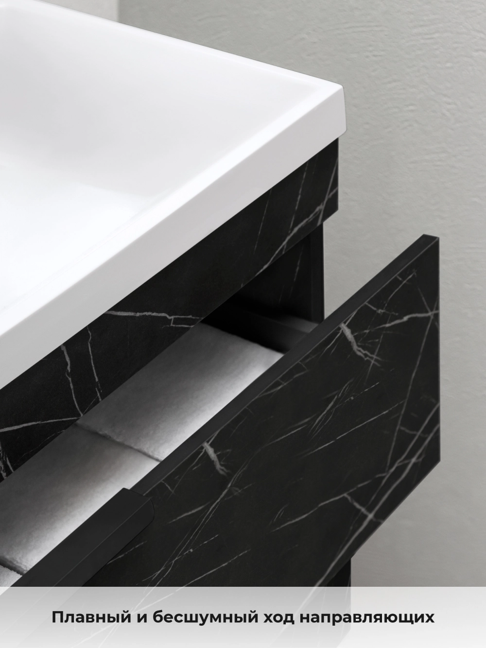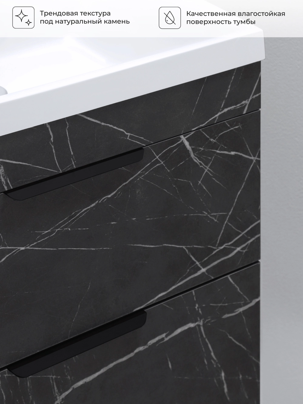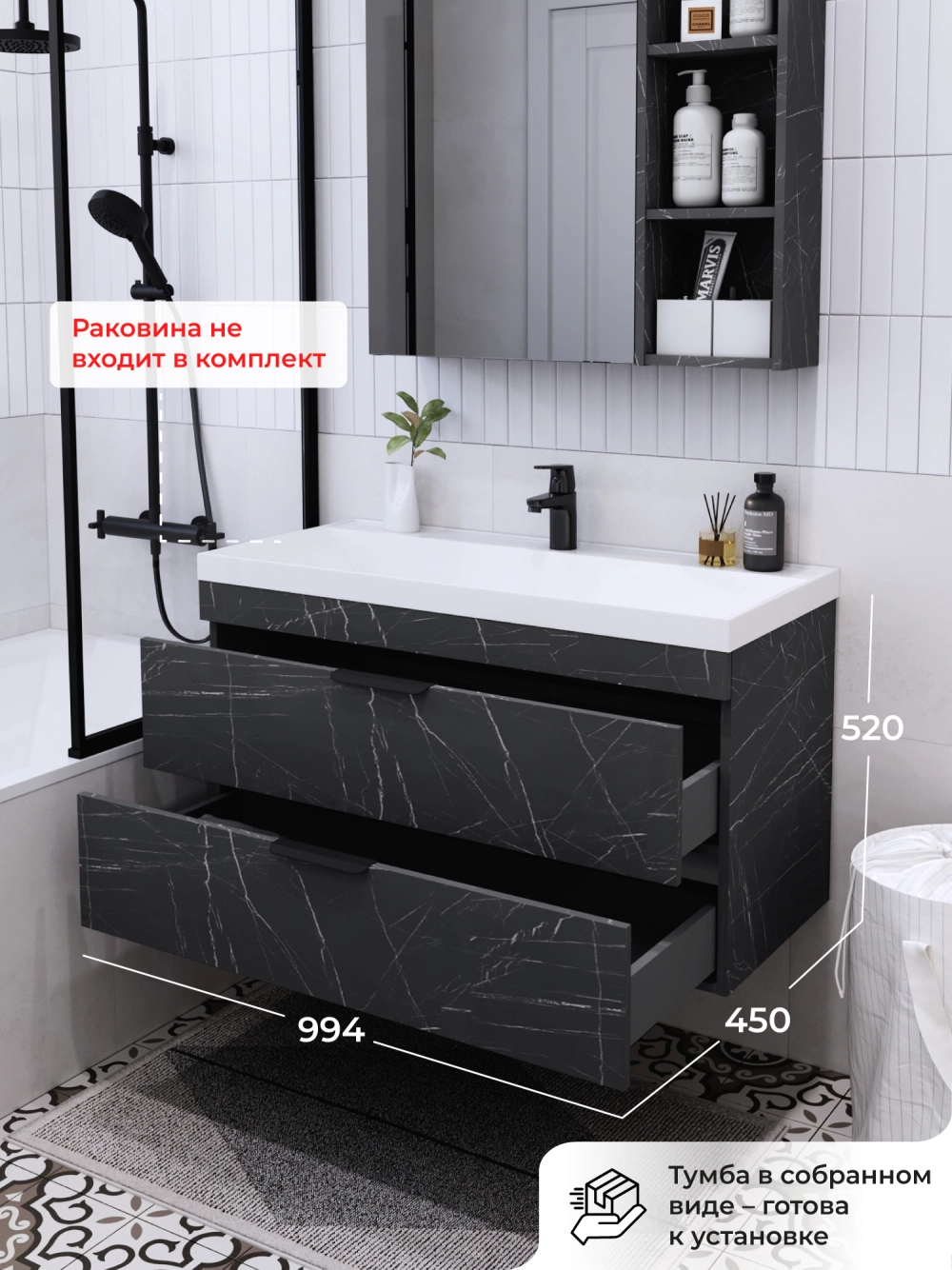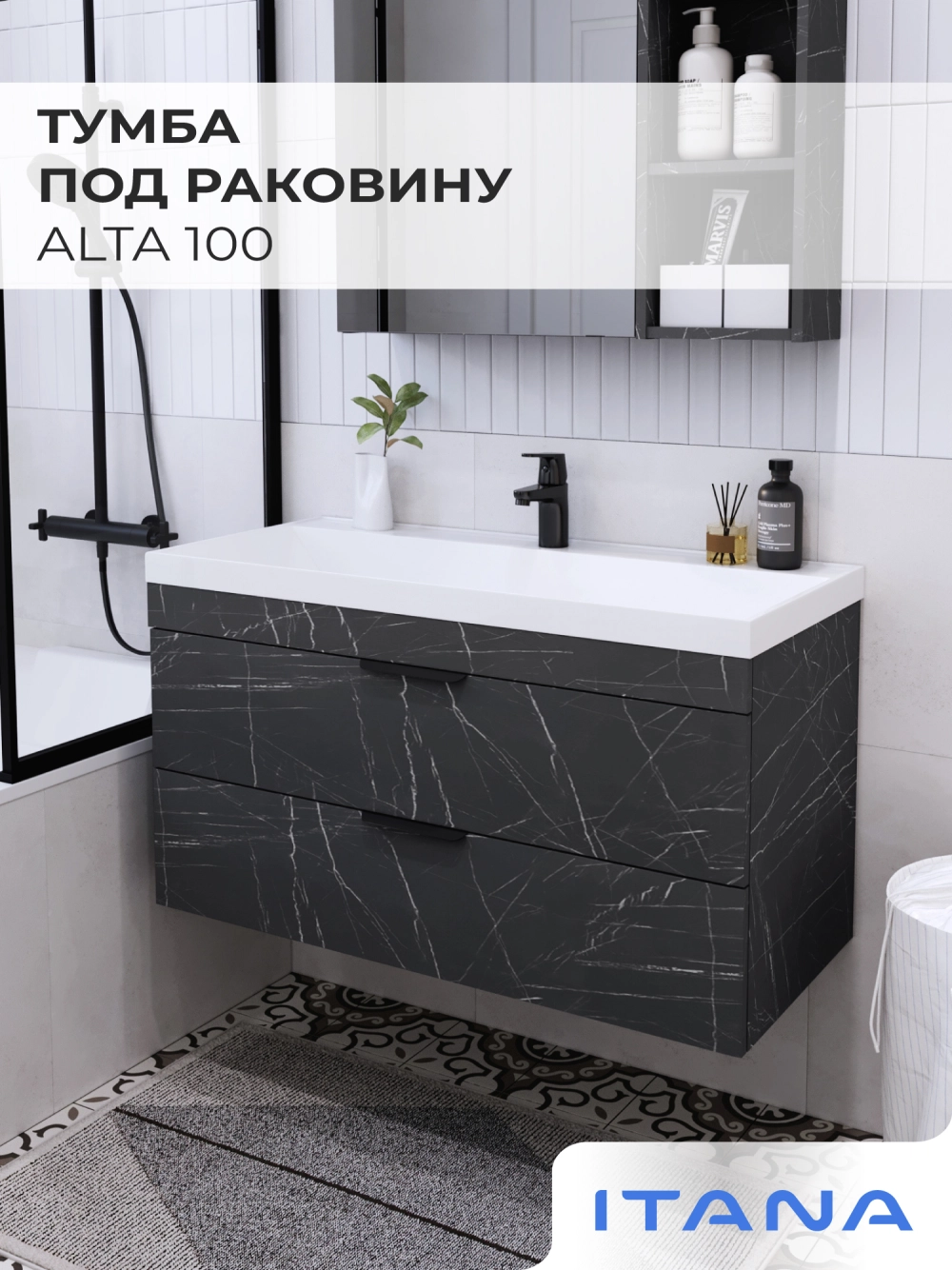 Тумба под раковину подвесная Итана Alta 100 с выдвижными ящиками под умывальник Clarissa 100 Камень Пьетра Гриджиа черный