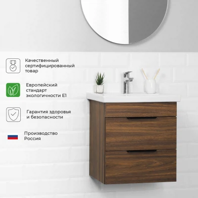 Тумба под раковину подвесная Итана Alta 50 с выдвижными ящиками Дуб бурбон