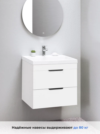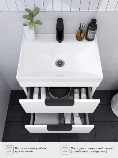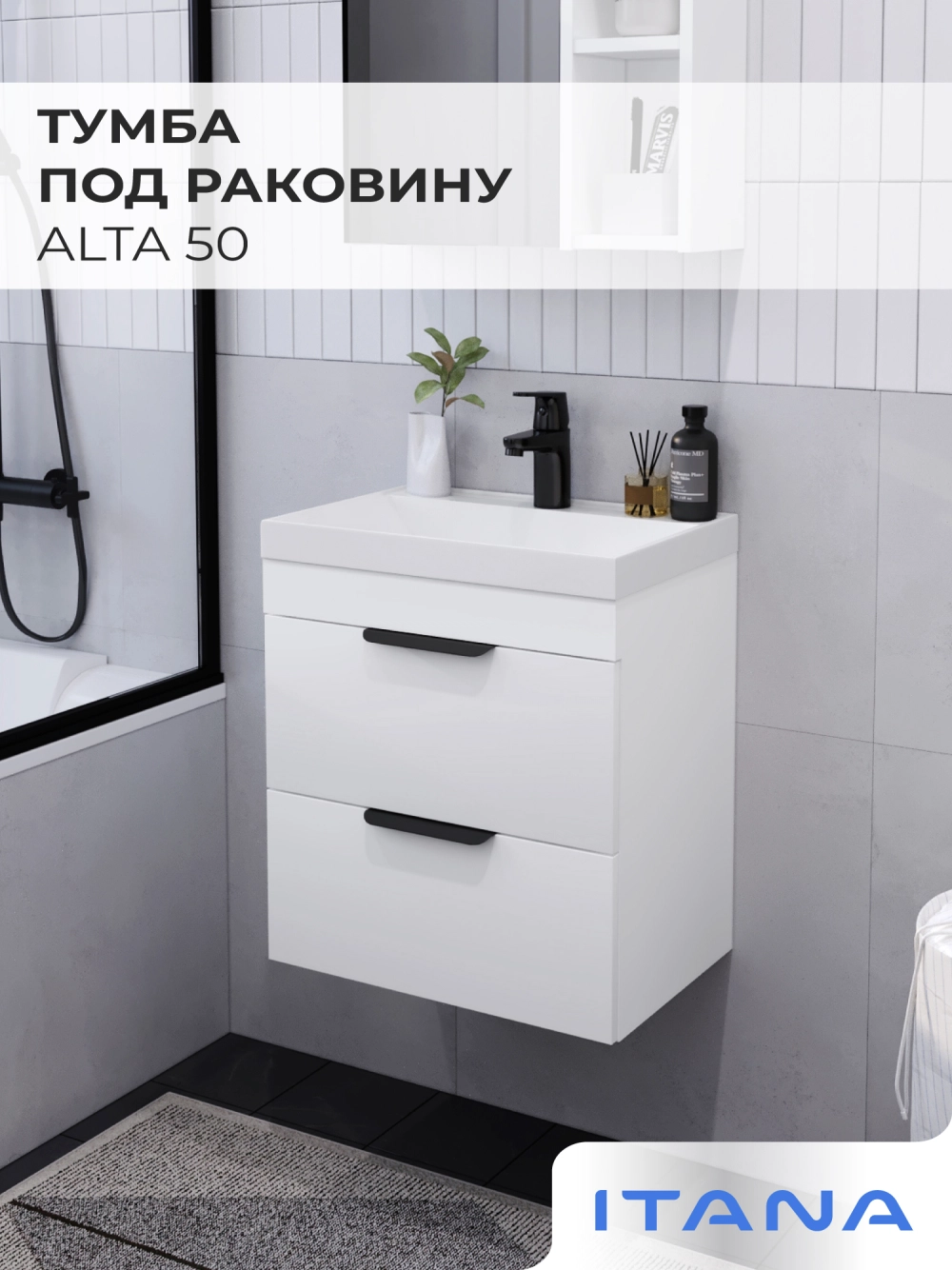 Тумба под раковину подвесная Итана Alta 50 с выдвижными ящиками под умывальник Clarissa 50 Белый Скандинавский