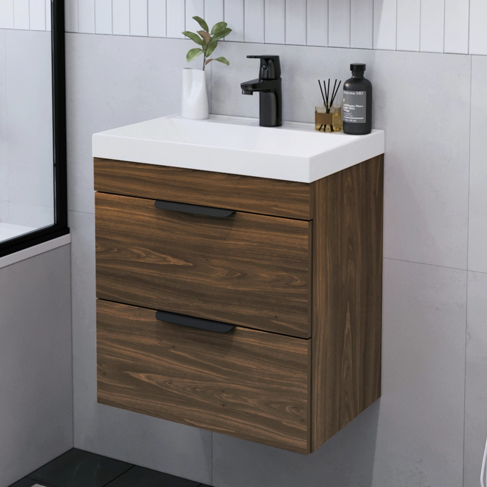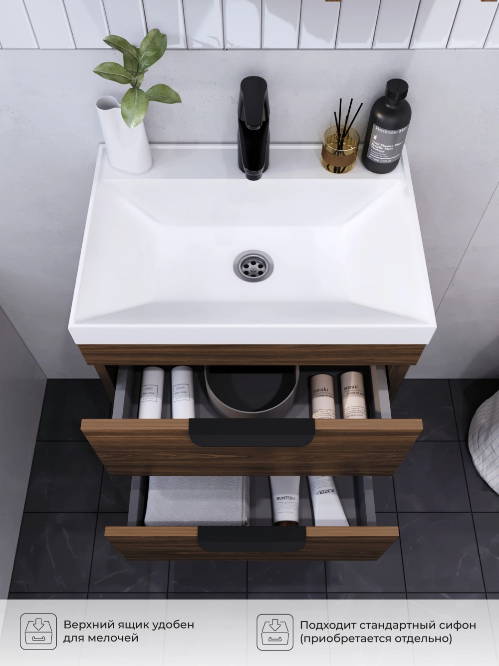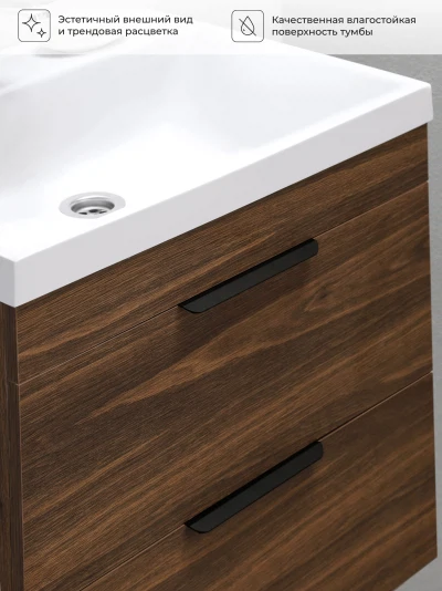 Тумба под раковину подвесная Итана Alta 50 с выдвижными ящиками под умывальник Clarissa 50 Дуб бурбон