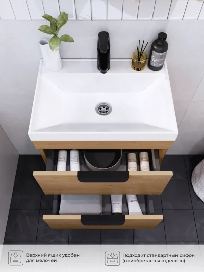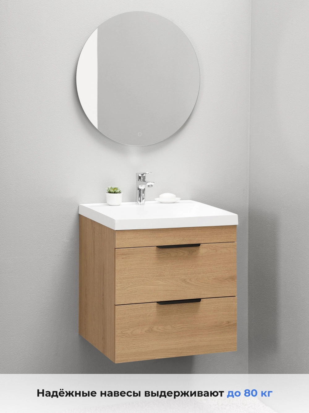 Тумба под раковину подвесная Итана Alta 50 с выдвижными ящиками под умывальник Clarissa 50 Дуб Корбридж натуральный